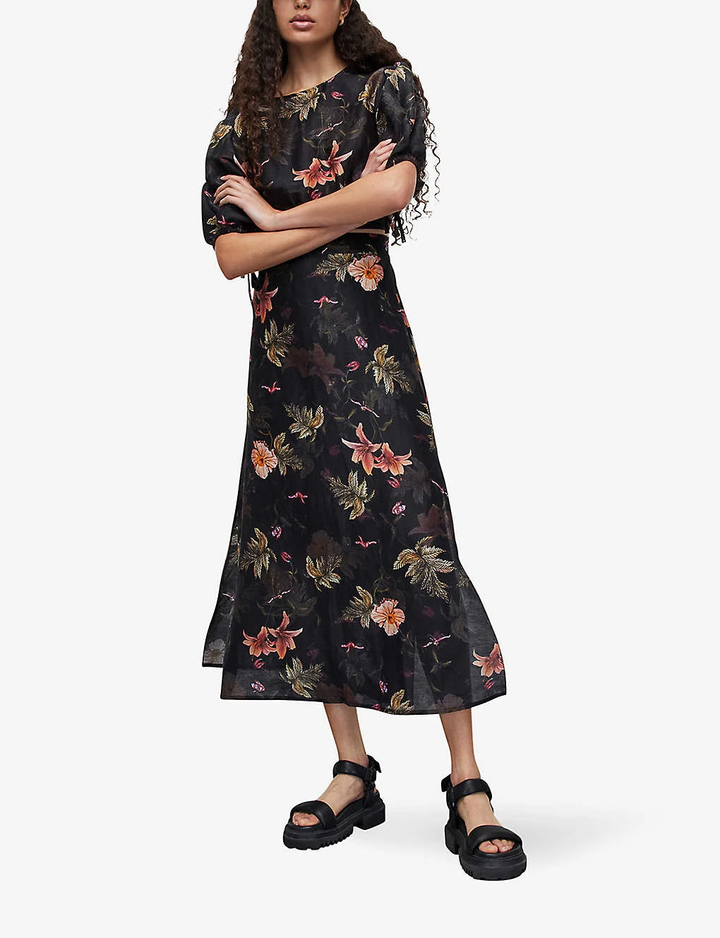 Be the first to review “AllSaints Asta Floral-print Linen-blend Maxi Skirt” Cancel reply