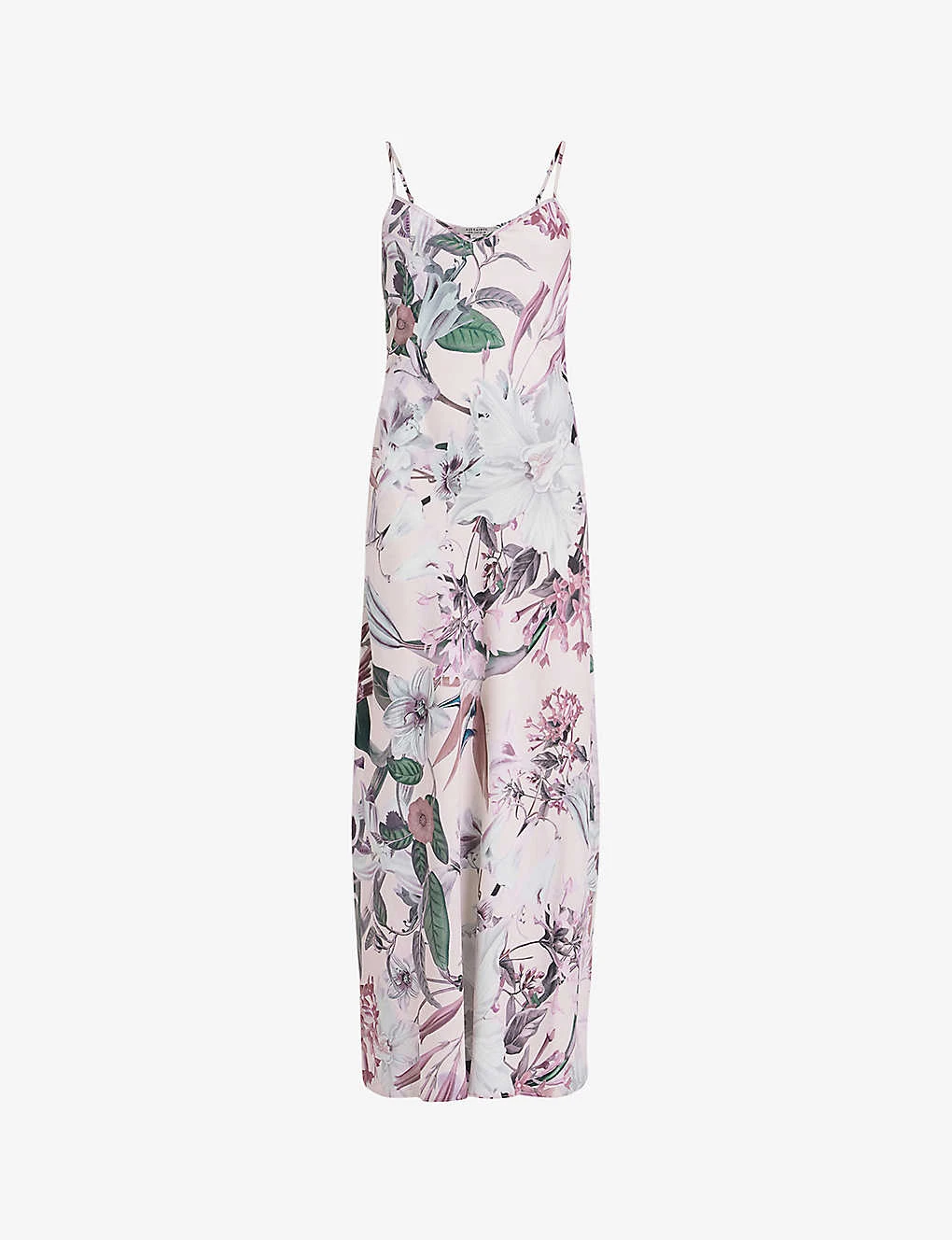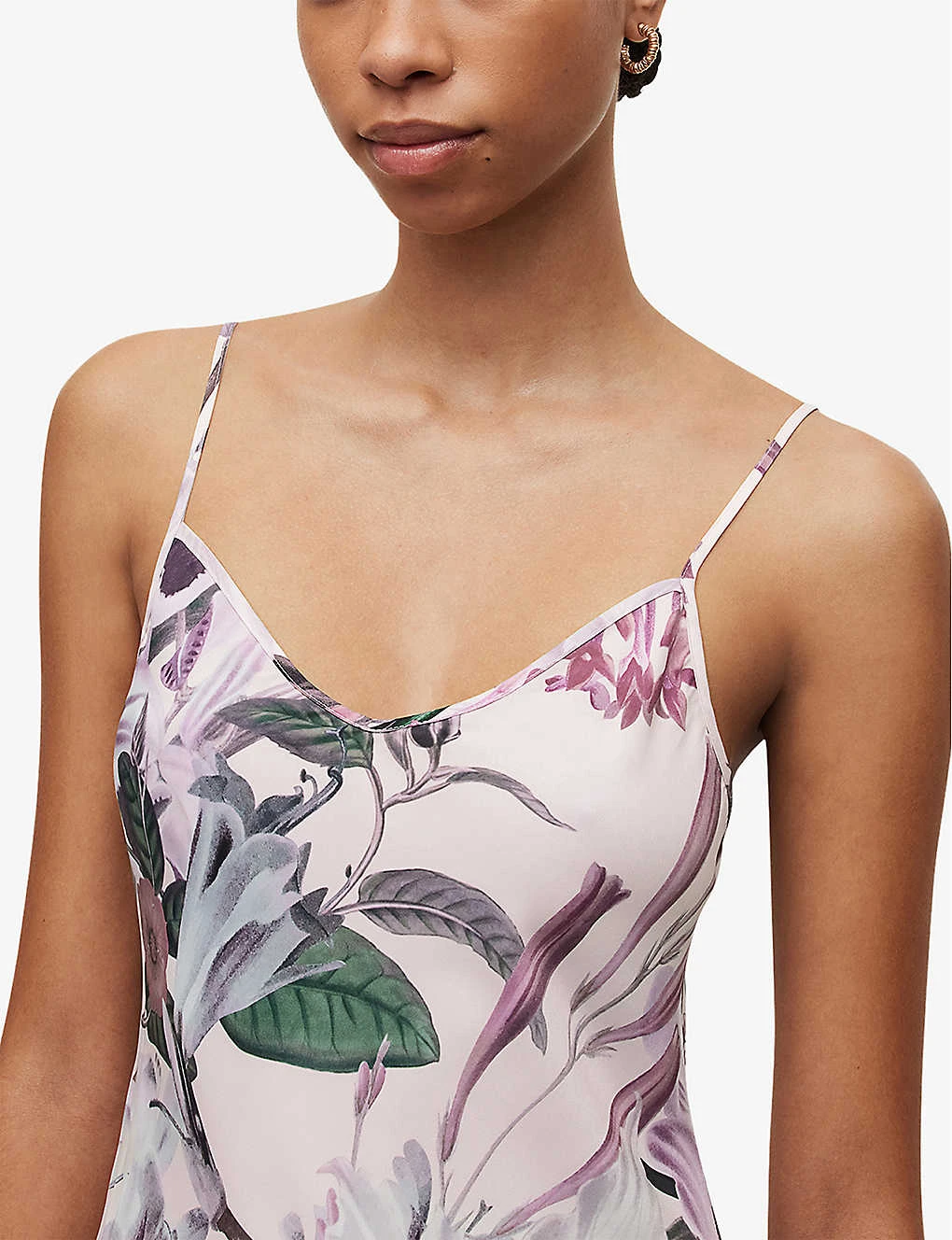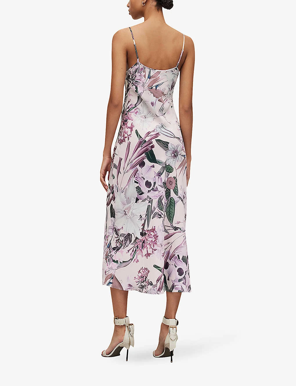 AllSaints Bryony Leondra Floral-print Bias-cut Recycled-polyester Midi Dress