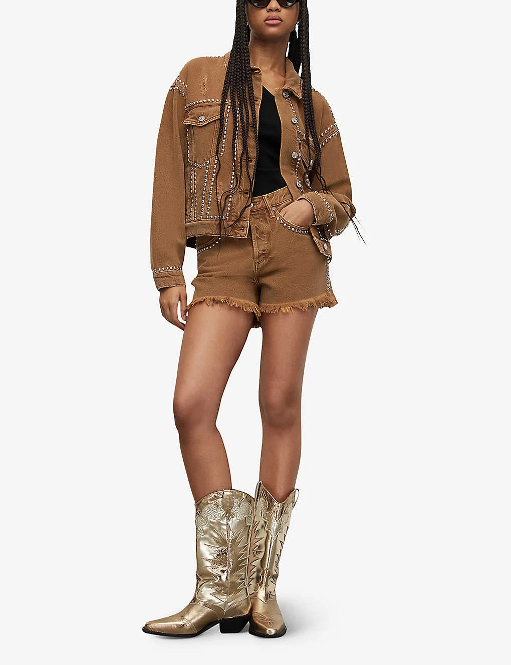 Be the first to review “AllSaints Heidi Stud-embellished Raw-hem Cotton-blend Shorts” Cancel reply