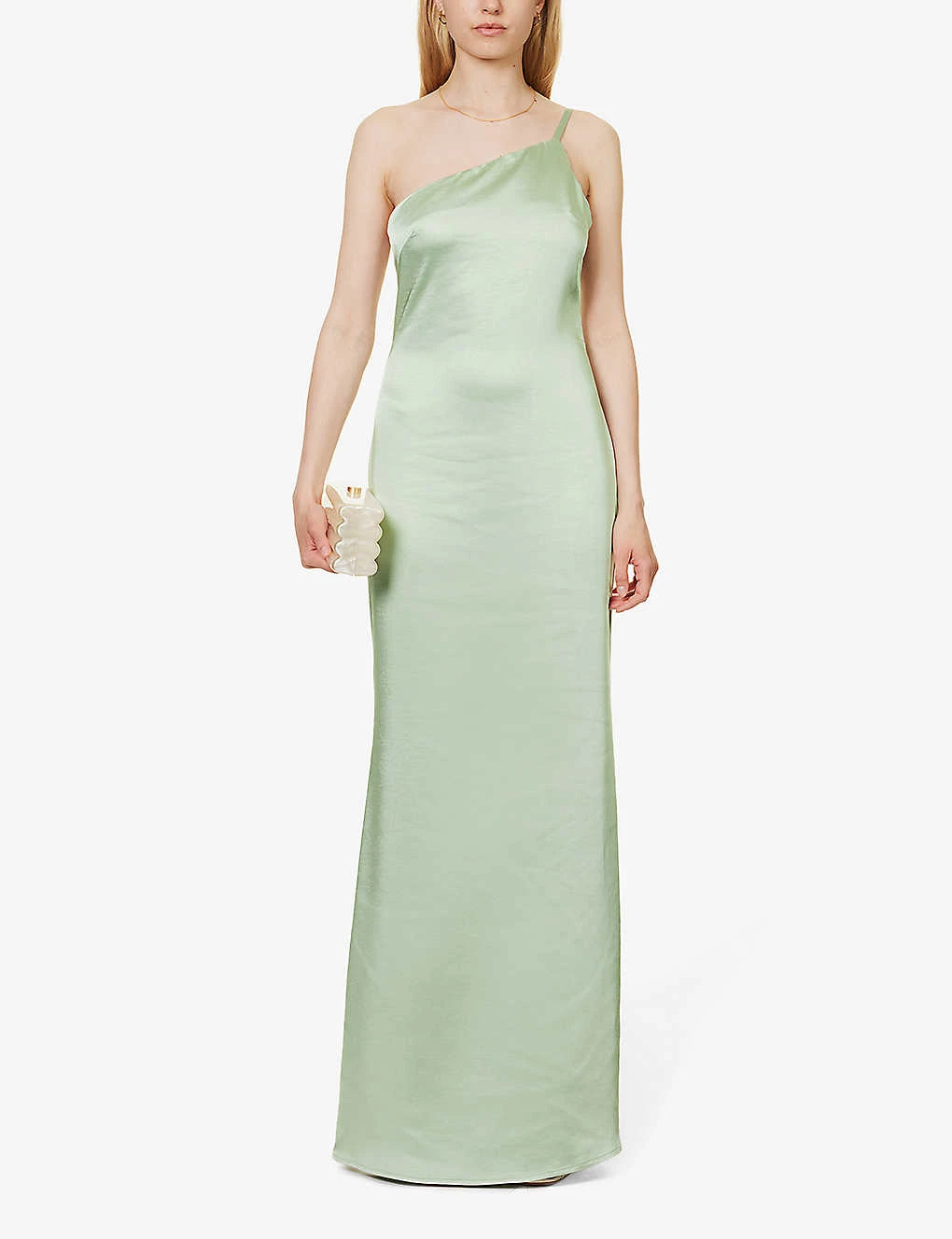 - Slim fit, asymmetric neckline, one shoulder, adjustable strap, soft flared silhouette