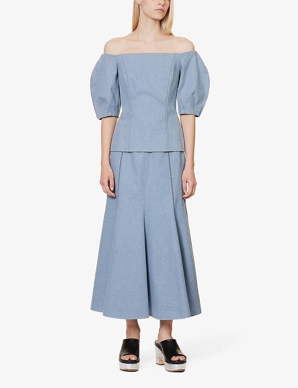 Amy Pleated-hem Upcycled-cotton Midi Skirt