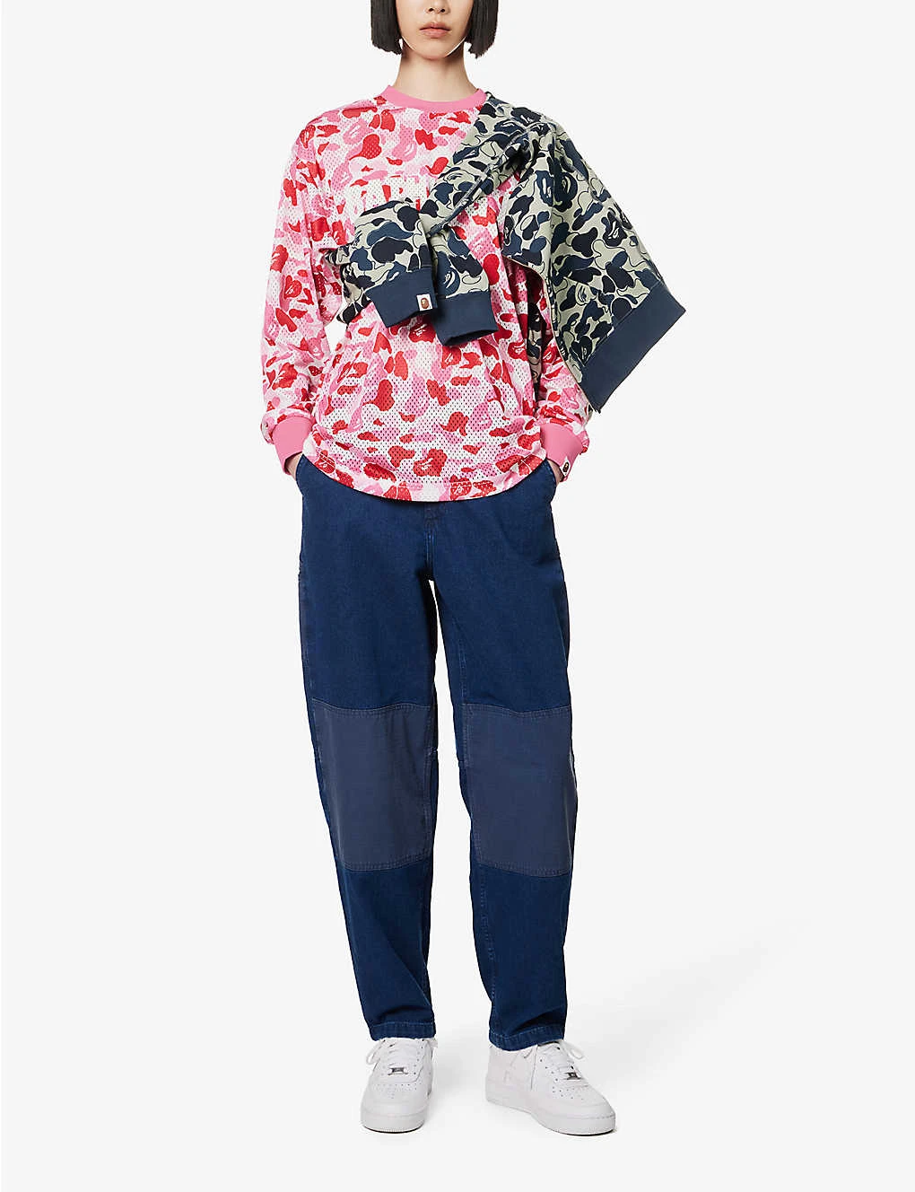 - Relaxed fit, round neck, long sleeves, brand patch at cuff, brand print at chest, all-over branded camouflage pattern, contrast ribbed trims