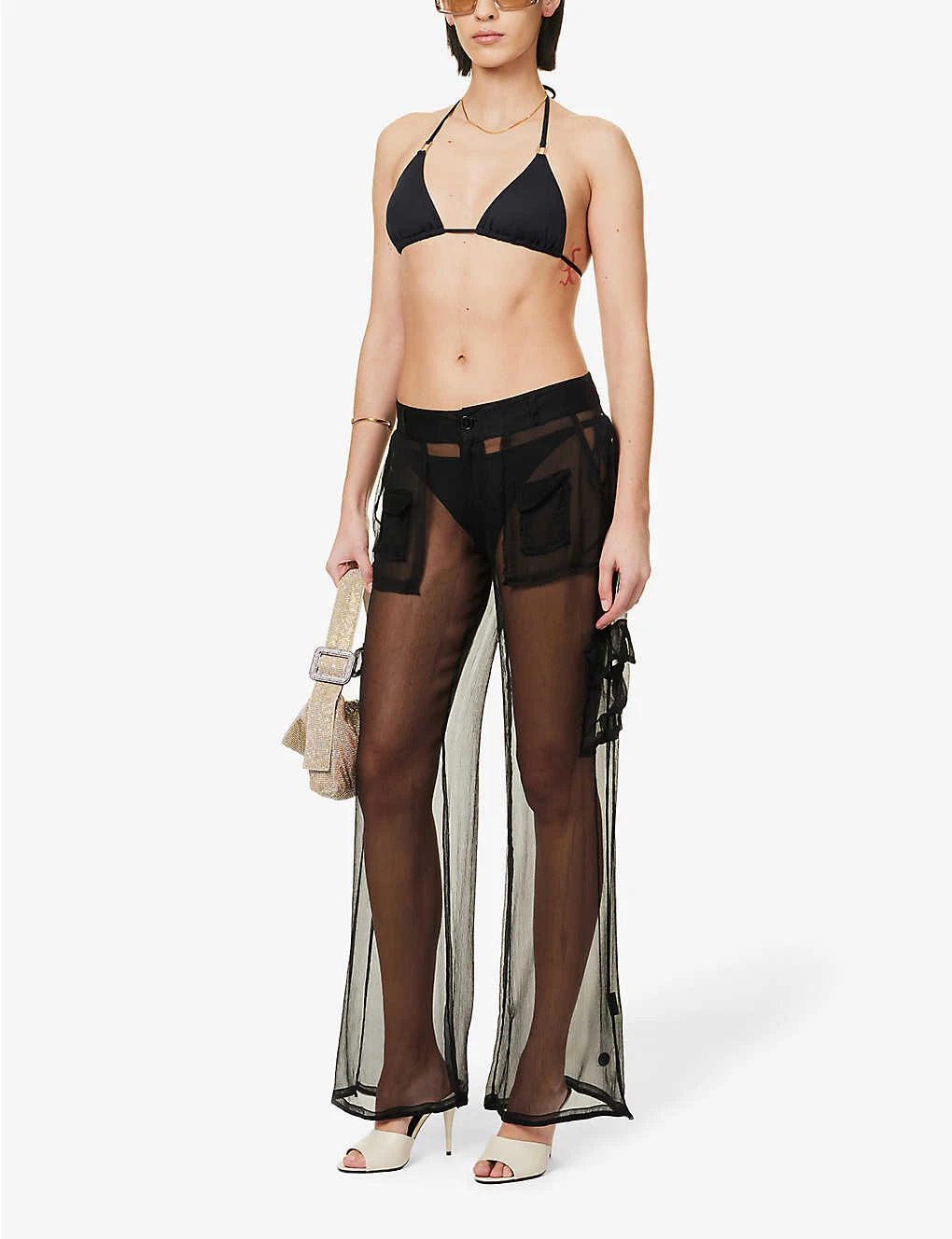 Cargo Semi-sheer Crepe Trousers