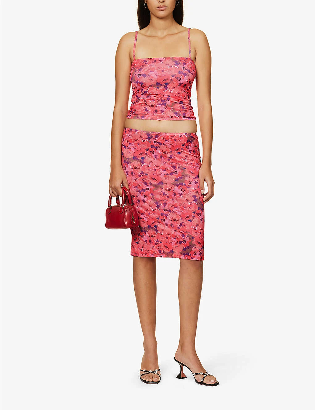 Chalala Floral-pattern Stretch-woven Midi Skirt