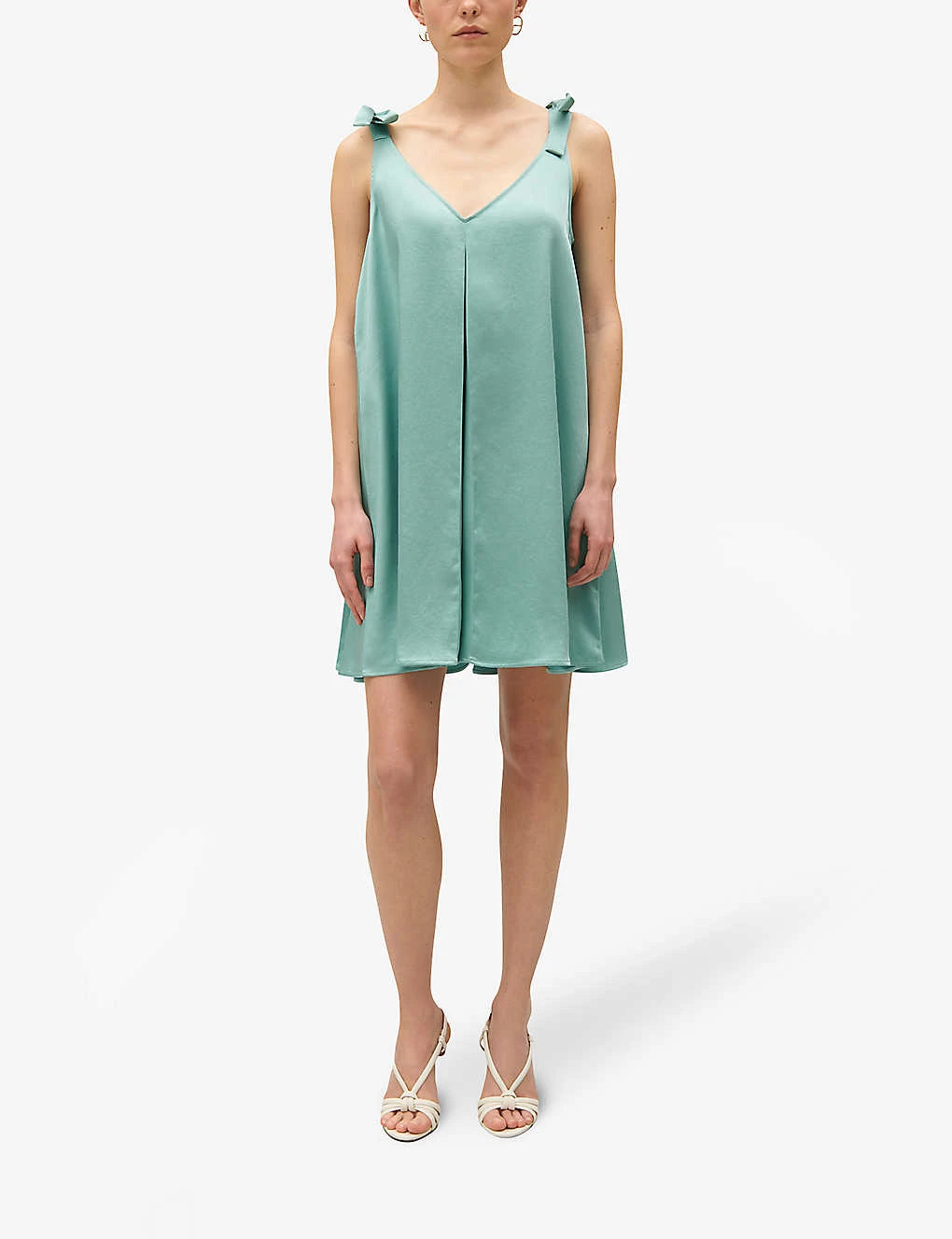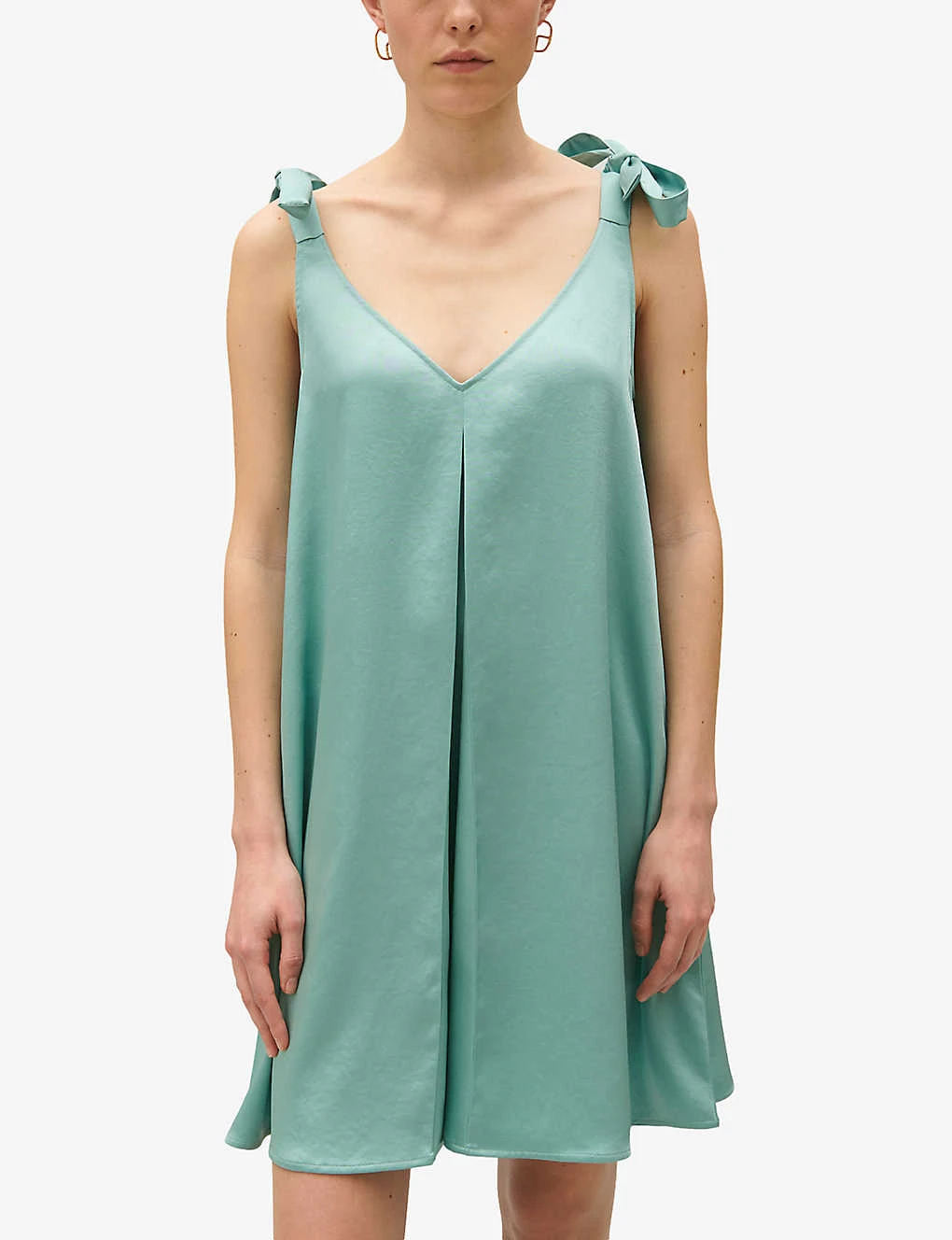 CLAUDIE PIERLOT Tie-strap Inverted-pleat Satin Mini Dress