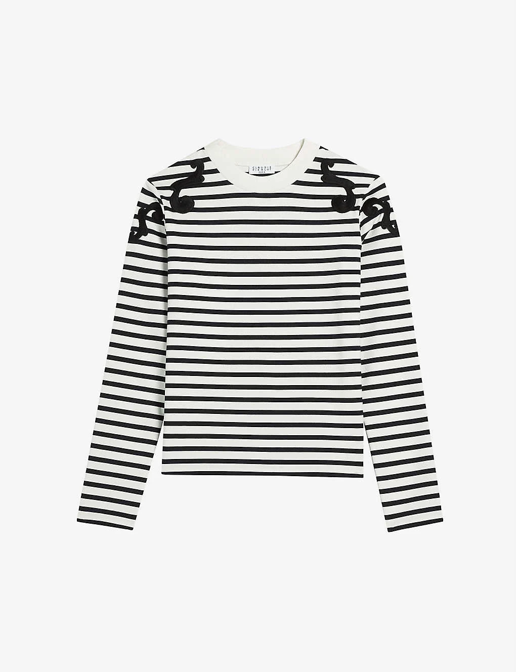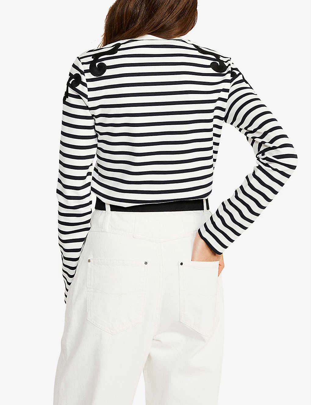- Regular fit, long sleeve, round neck, striped print, embroidered detailing on the shoulders, straight hem