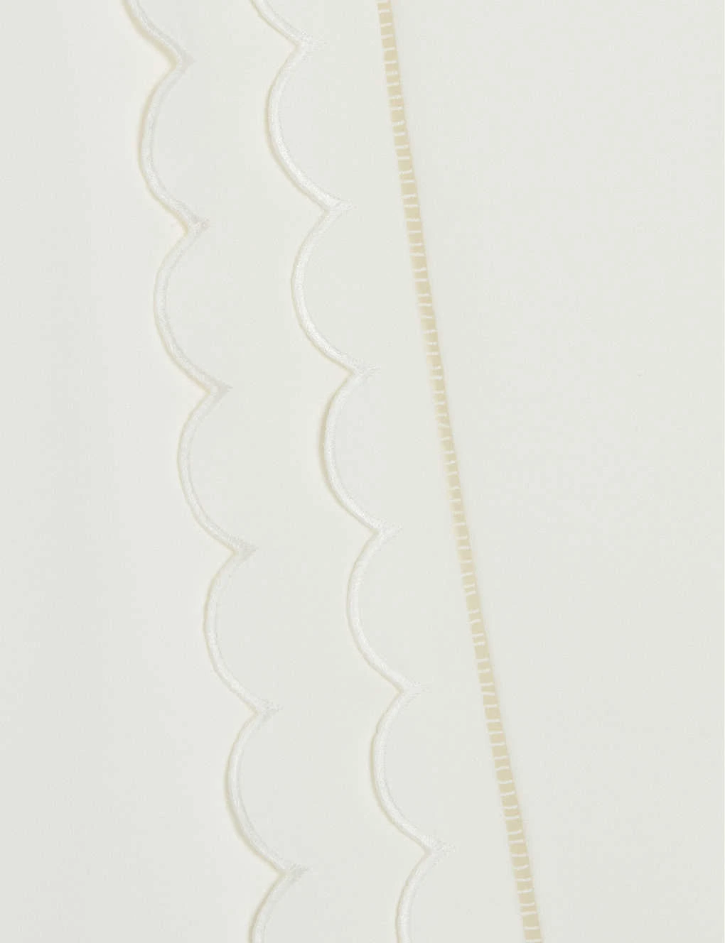- Round neck, short sleeves, scalloped trim, lace insert straight fit