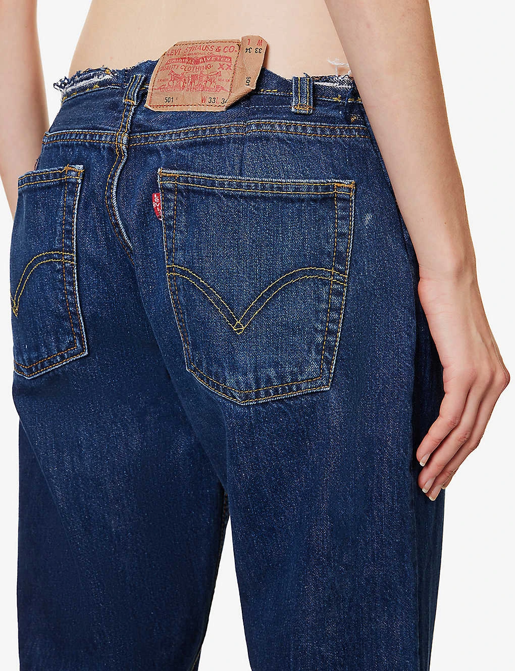 Be the first to review “Distressed Flared-leg Low-rise Upcycled Denim Jeans” Cancel reply