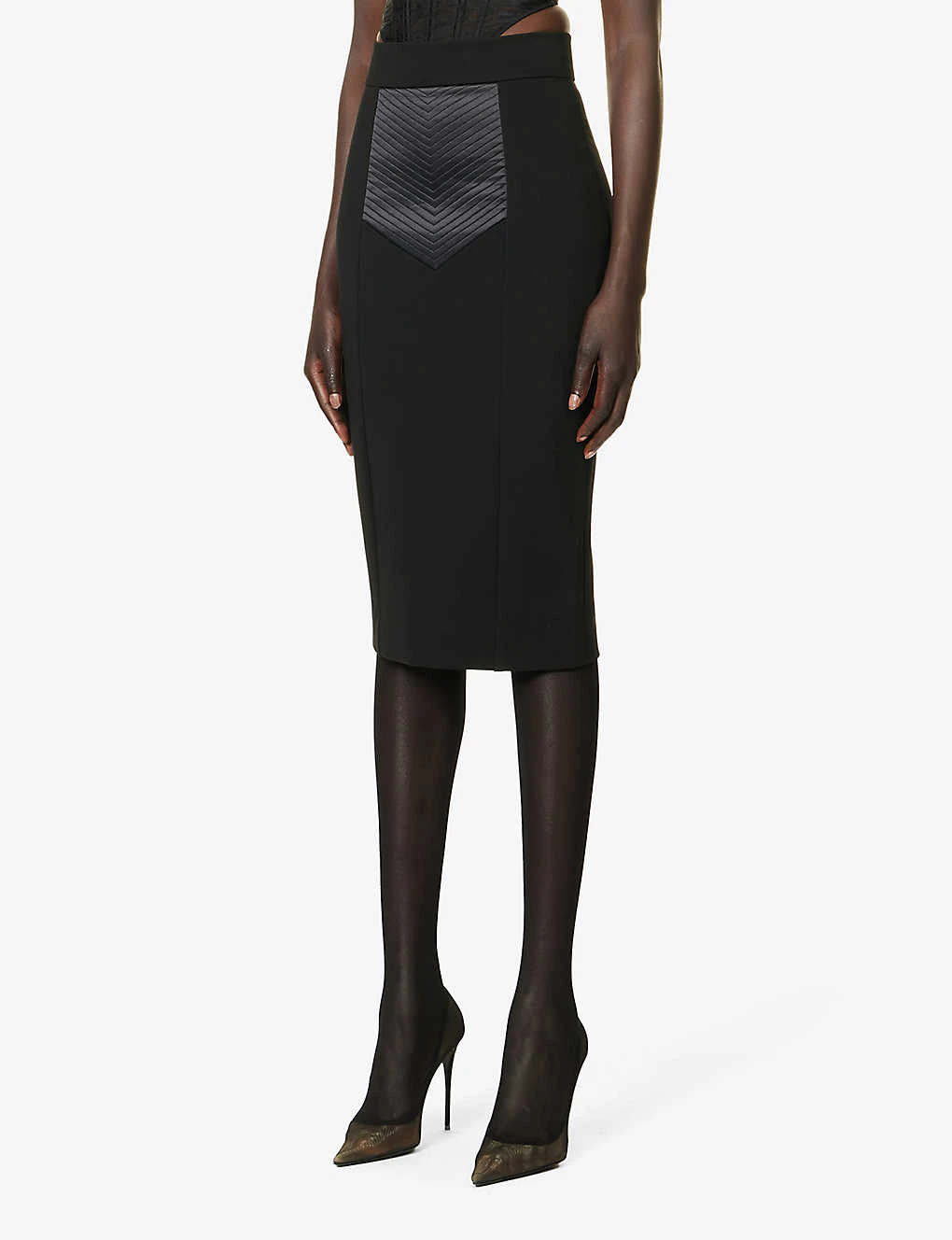 Dolce & Gabbana Contrast-panel High-waist Slim-fit Stretch-woven Midi Skirt