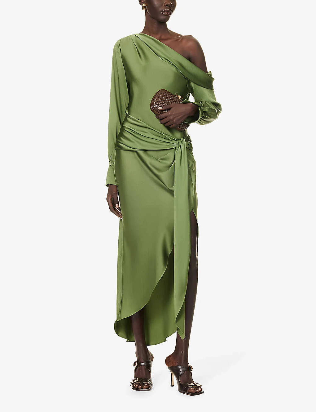Be the first to review “Elisabetta Asymmetric Satin Midi Skirt” Cancel reply