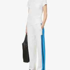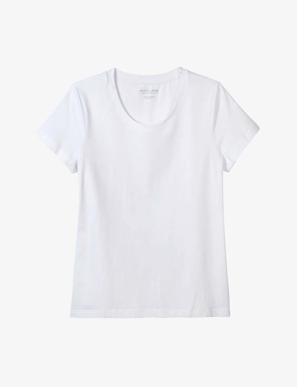 The White Company stretch-jersey T-shirt Slips on Scoop neck, short sleeves, straight hem 95% cotton, 5% elastane Machine wash cold True to size Size 8: Length 24″” Model is 5ft 10″” and wears a size 8
