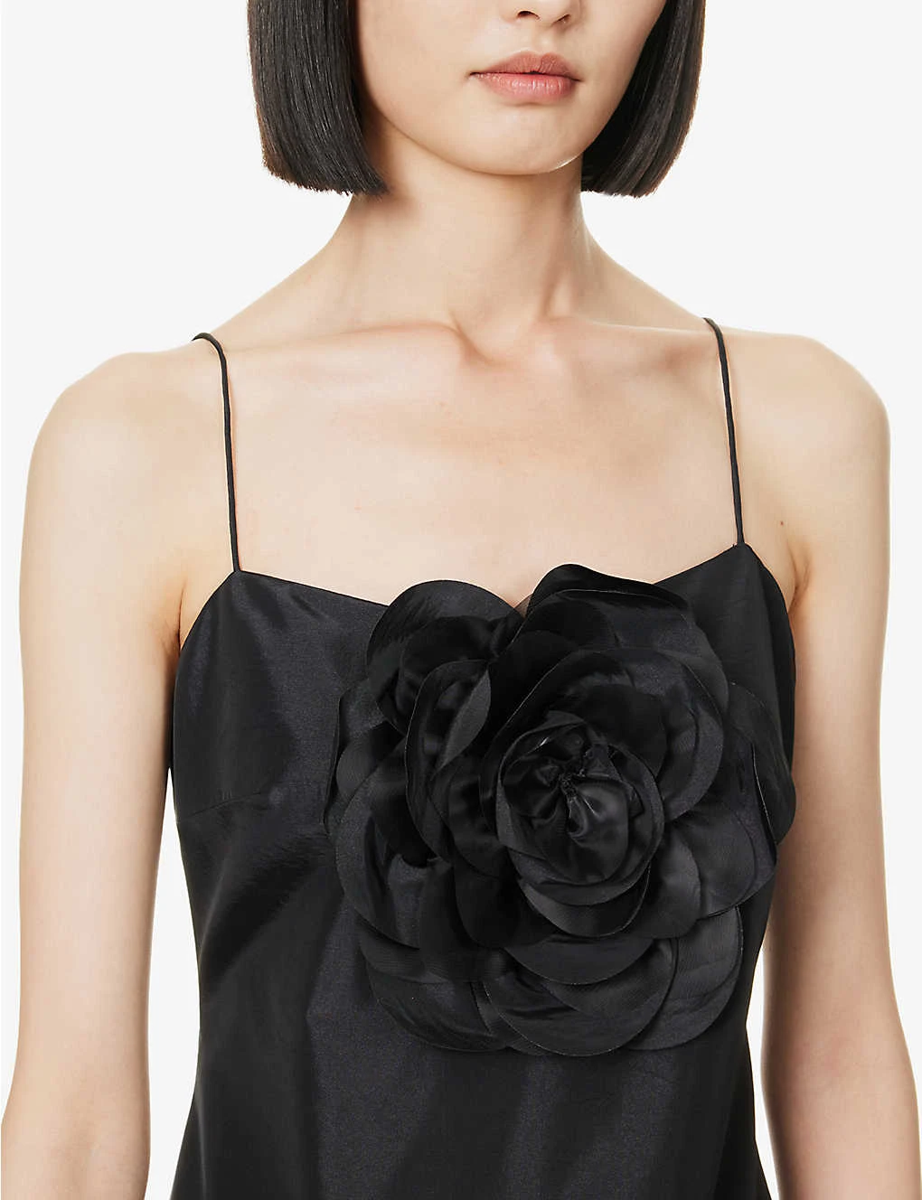 - Regular fit, sweetheart neckline, shoulder straps, floral applique at front, tiered skirt, lined