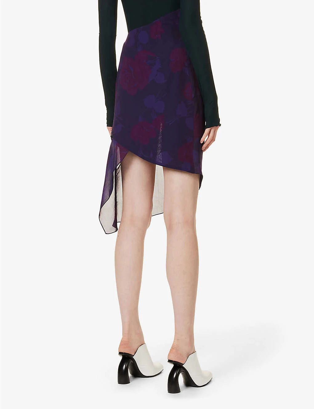 Floral-print Asymmetric-hem Silk Midi Skirt