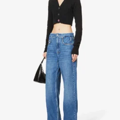 - Relaxed fit, mid-rise, straight wide leg, belt loops, five pockets, faded wash, straight cuffs