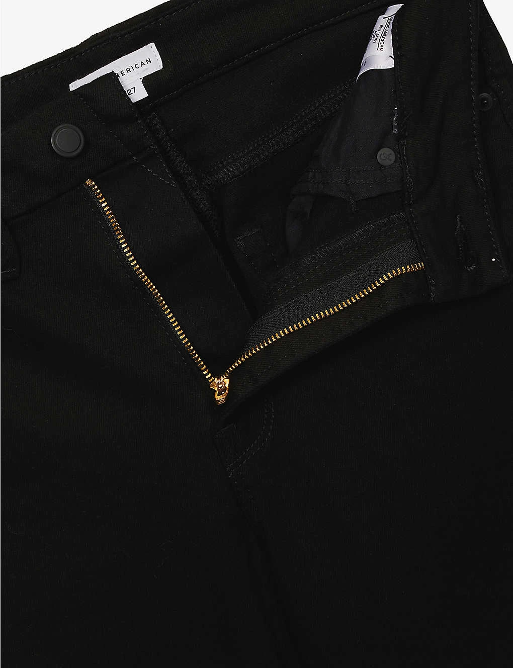 - Exposed button and concealed zip-fly fastening at front