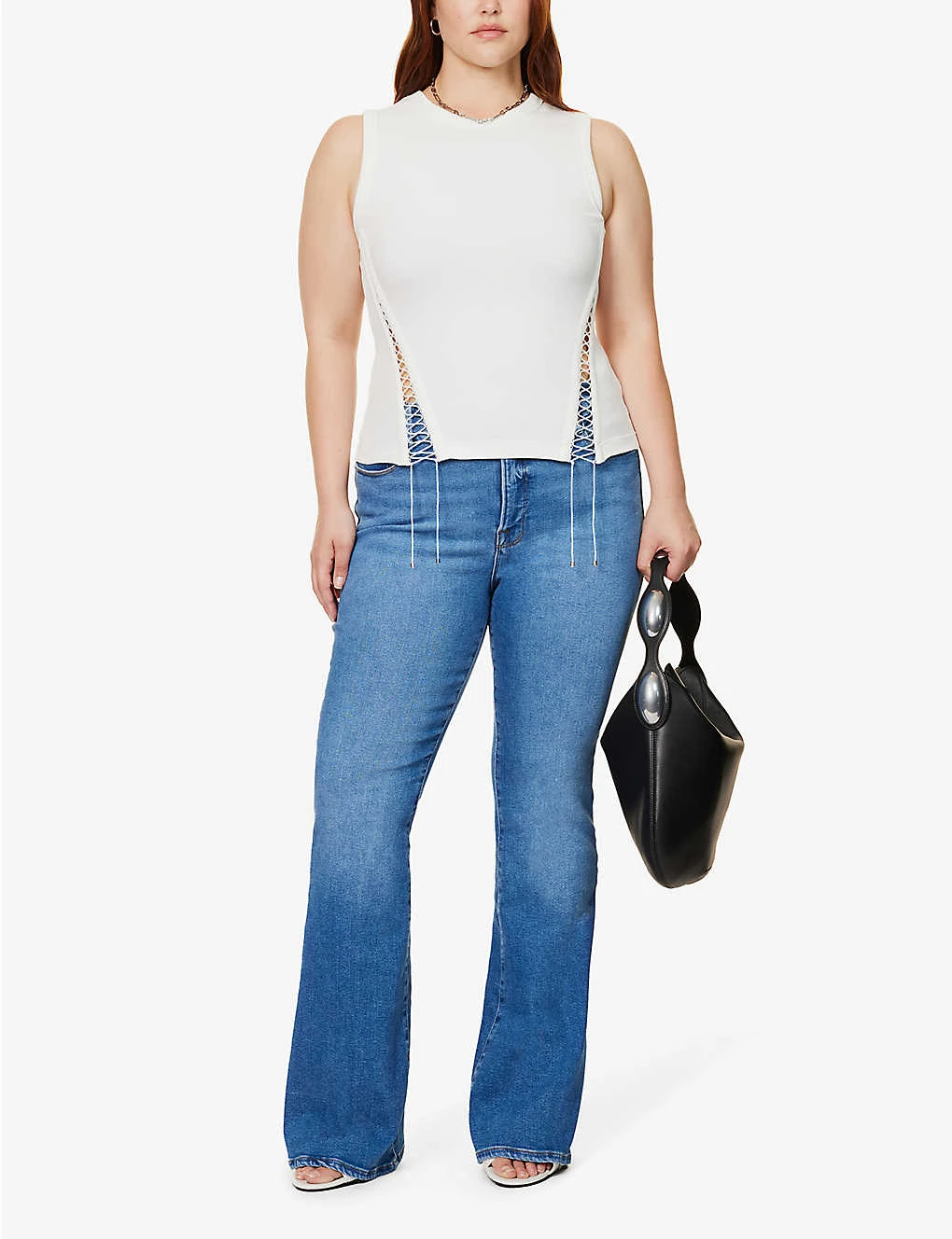 Be the first to review “GOOD AMERICAN Good Legs Mid-rise Flared-leg Regular-fit Stretch-recycled Denim Jeans” Cancel reply