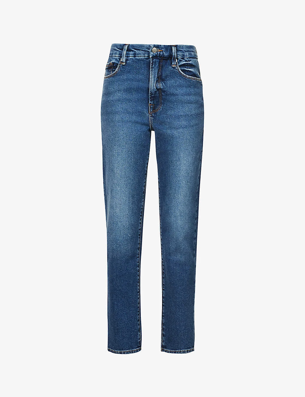 - Exposed button and concealed zip-fly fastening at front