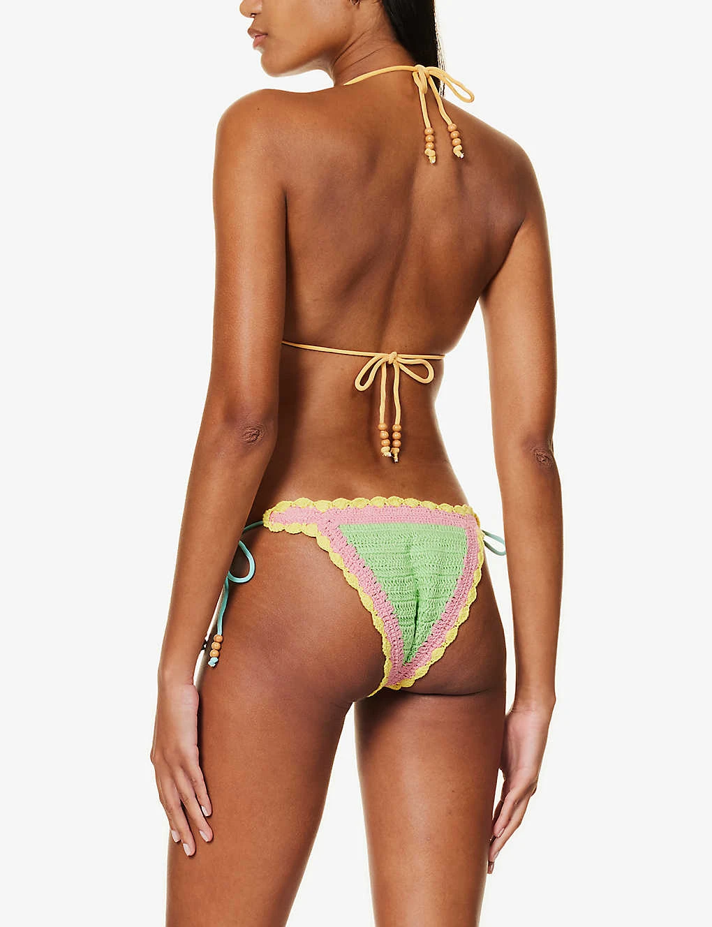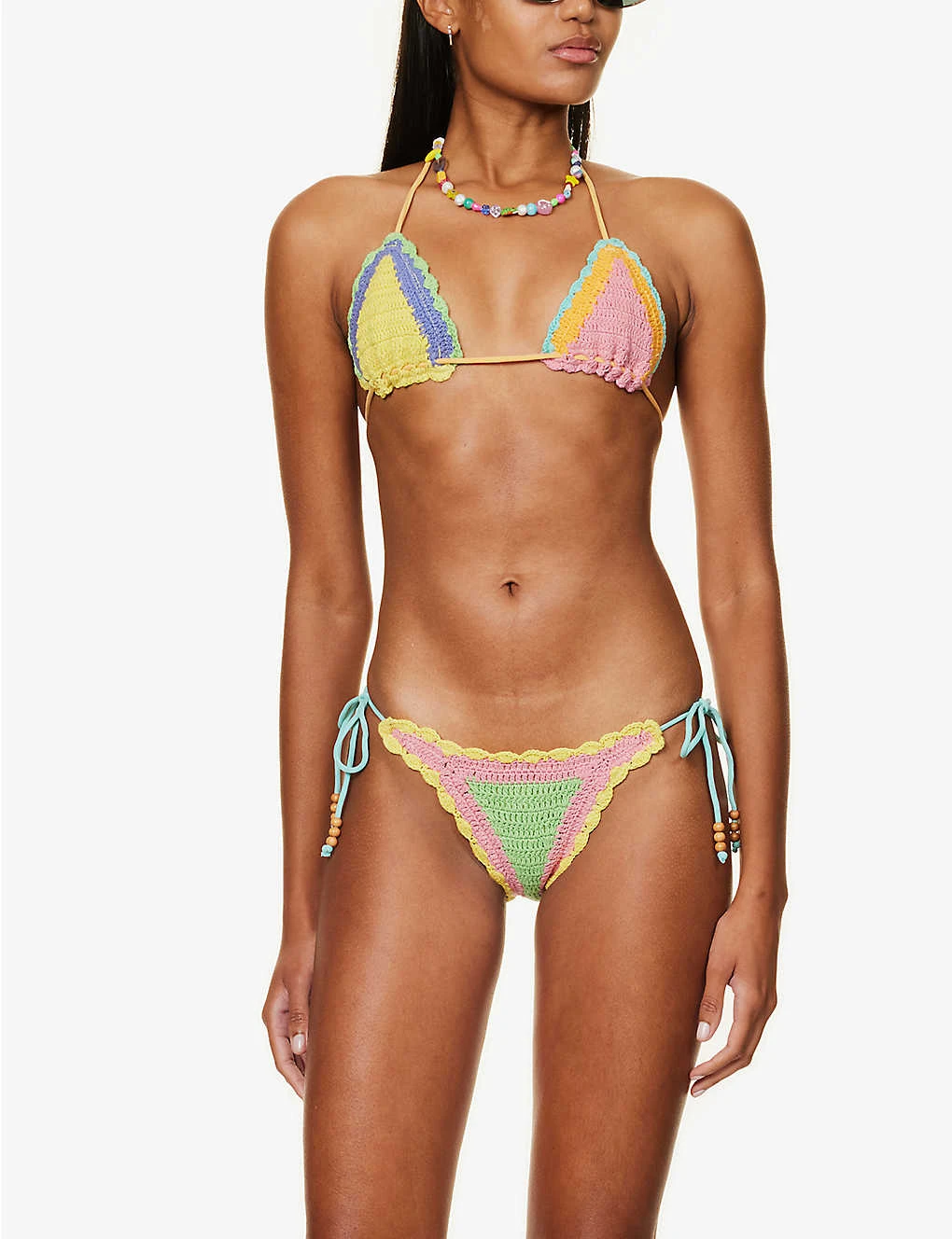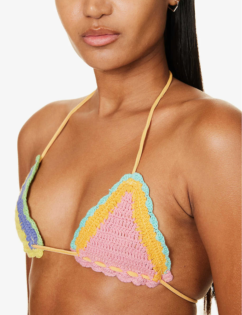 - Halterneck, triangular cups, all-over crochet, fully lined