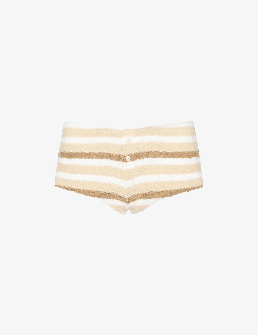 - Regular fit, low-rise, elasticated waistband, buttons embellishment at front, all over striped print, all over knitted, towelling texture