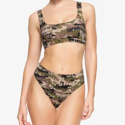 Scoop-neck Camouflage-print Recycled Stretch-nylon Bikini Top