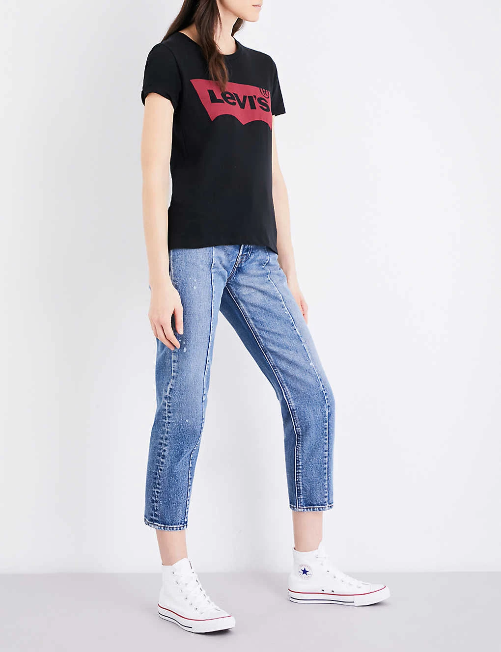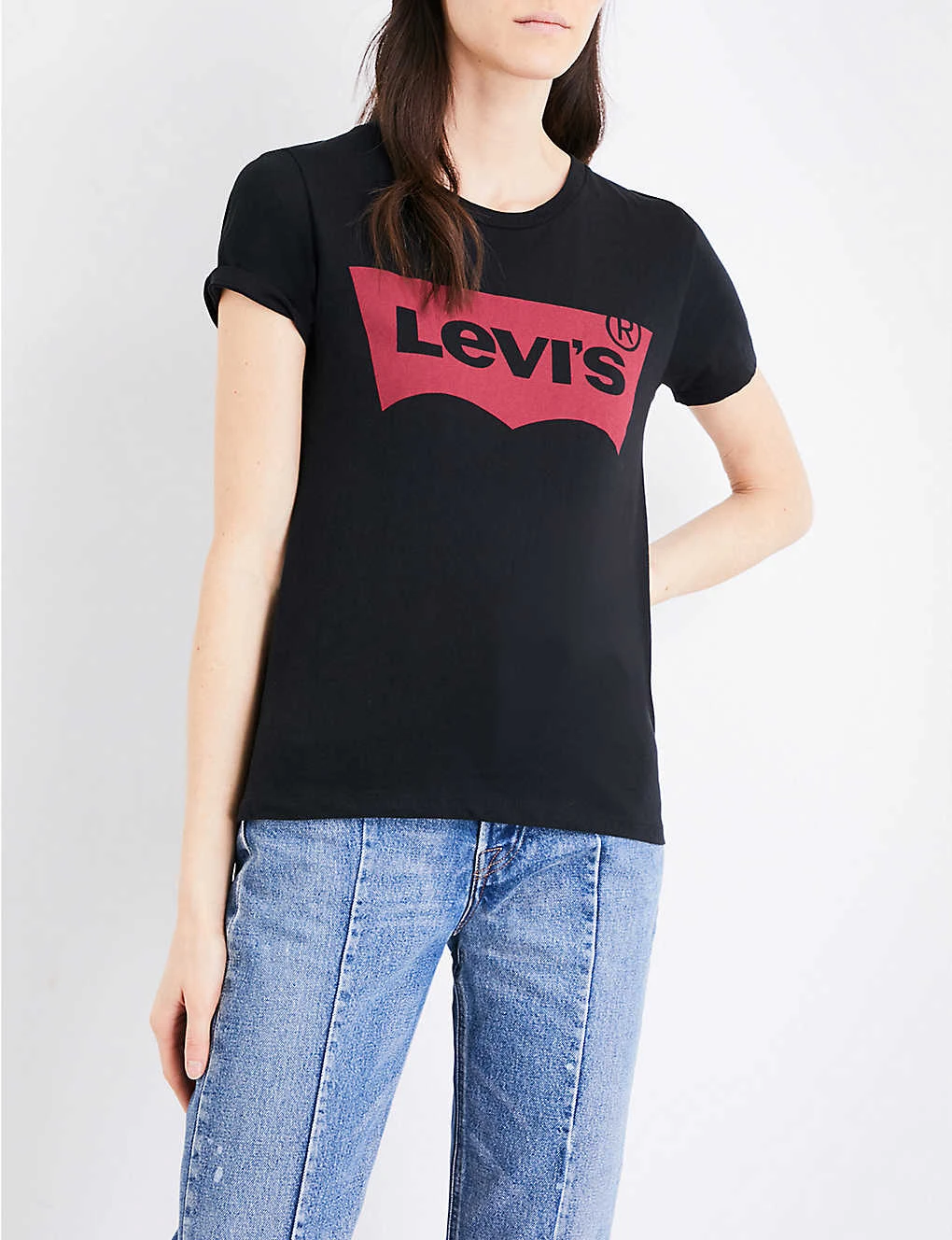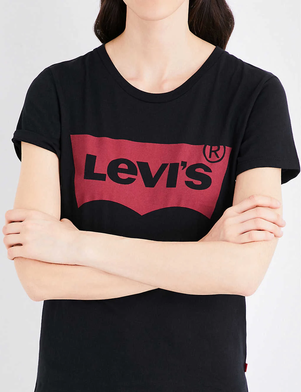 Levi’s cotton-jersey T-shirt Slips on Round ribbed neck, short sleeves, logo-print at front, brand tab at side seam, straight hem 100% cotton Machine wash True to size Size small: Length 23″” Model is 5ft 10″” and wears a size small