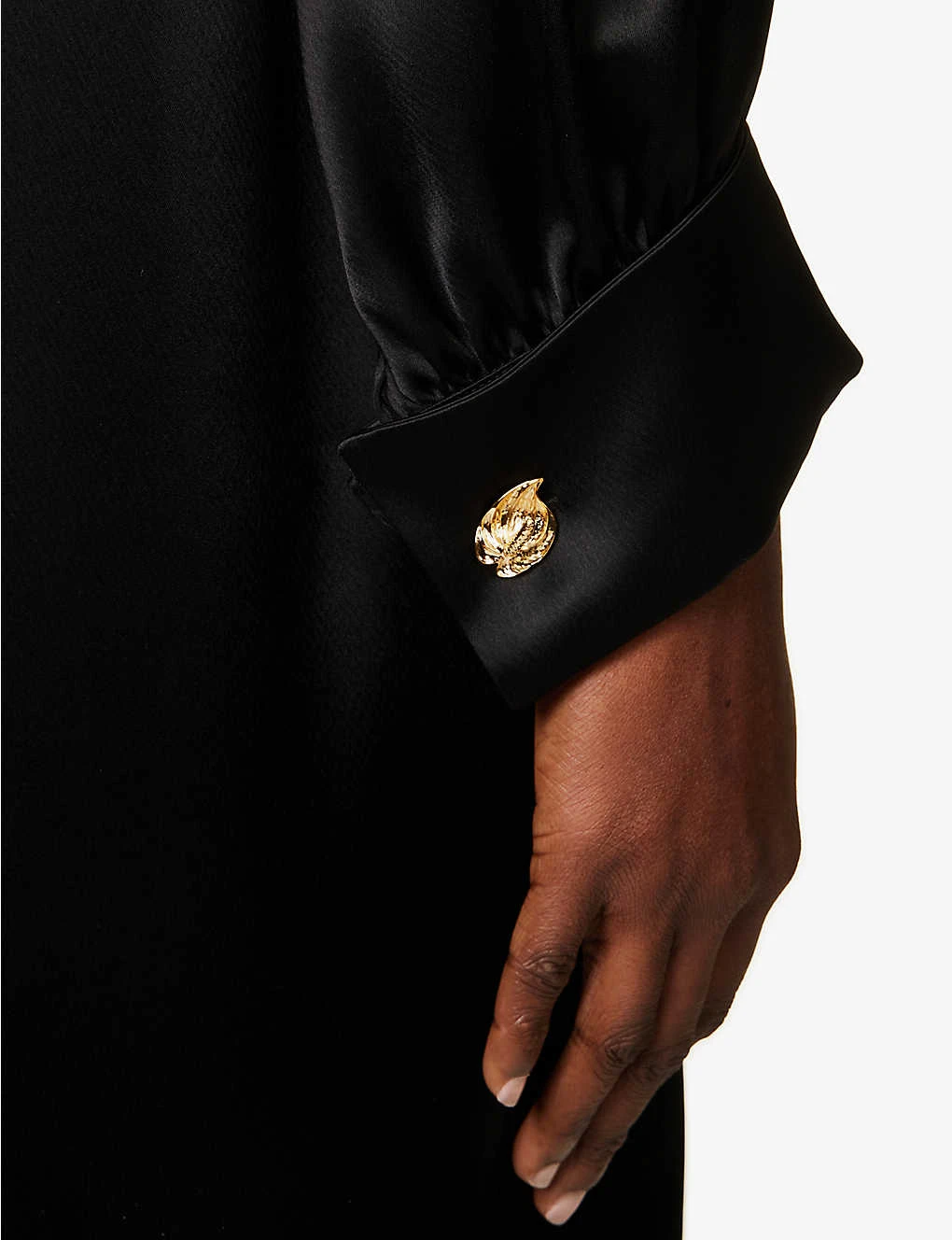 - Regular fit, collar, long sleeves, buttoned cuffs, gold-toned branded cufflinks, embroidered branding at back, box pleat at back, self-tie panels at sides