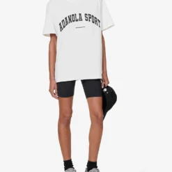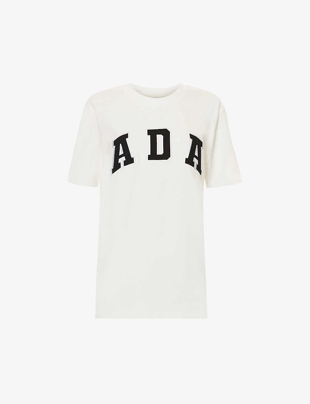 - Relaxed fit, round neck, ribbed trim at neck, short sleeves, brand appliqués at front