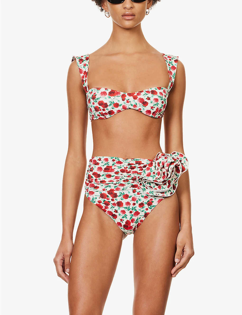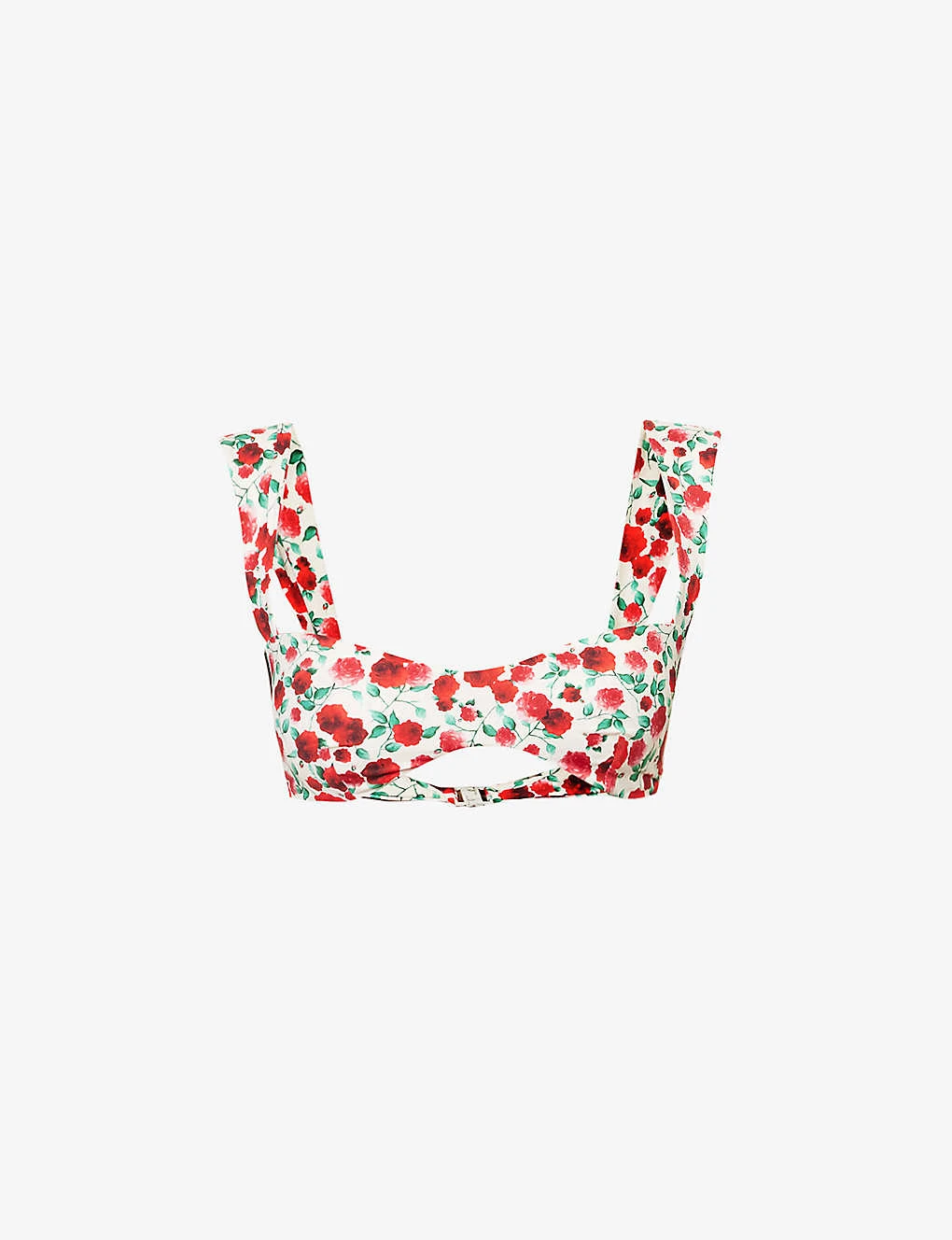 Magda Butrym Floral-pattern Sweetheart-neck Bikini Top