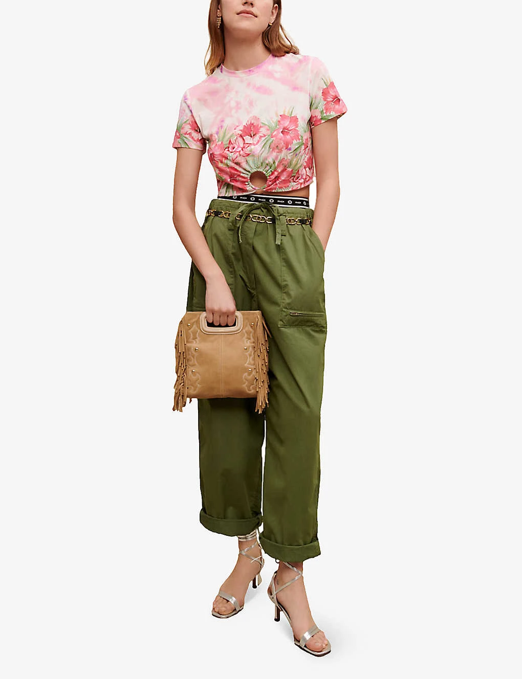 Be the first to review “Maje Floral-print Cut-out Cotton T-shirt” Cancel reply