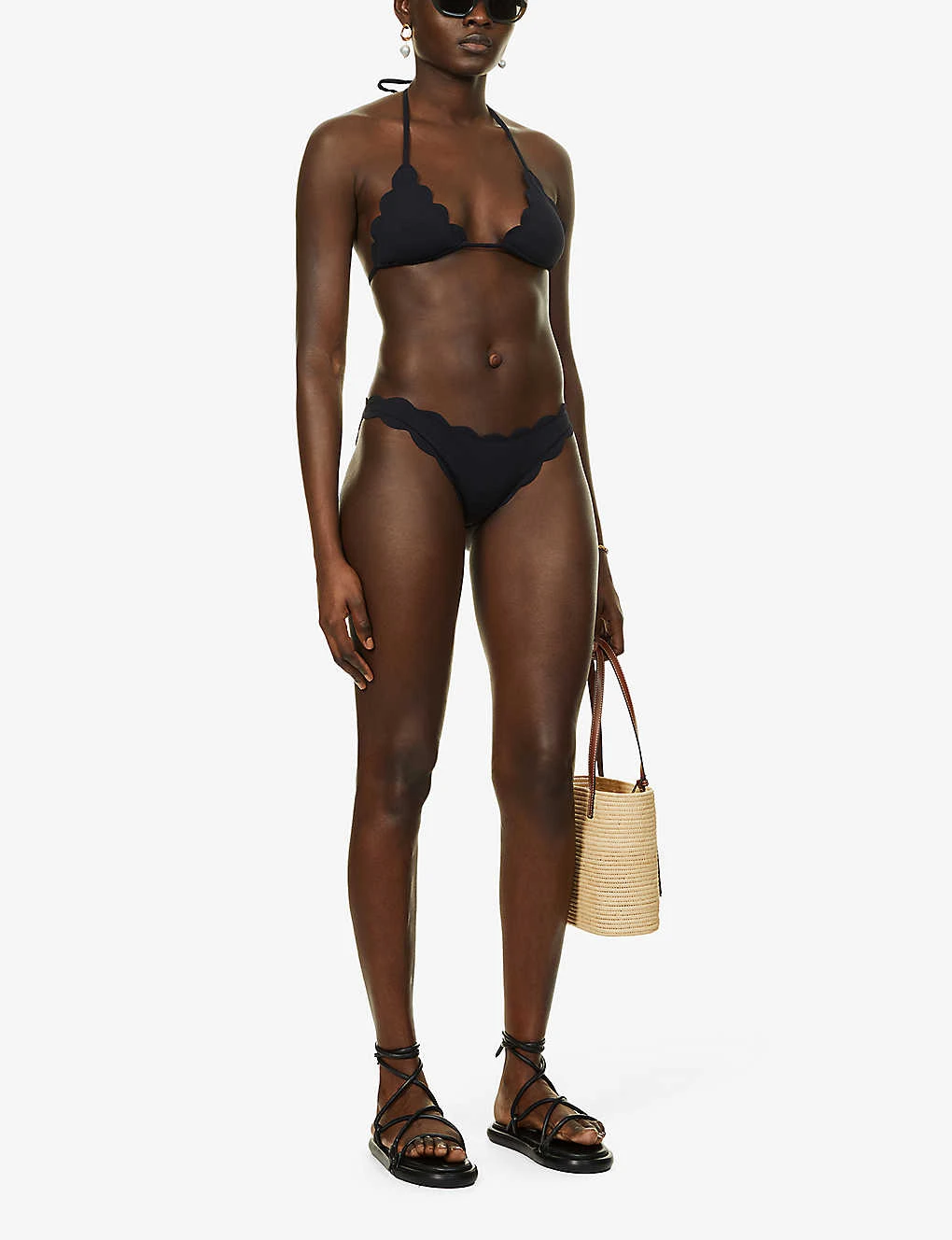 - Halterneck, triangle cups, removable padding, scalloped trims