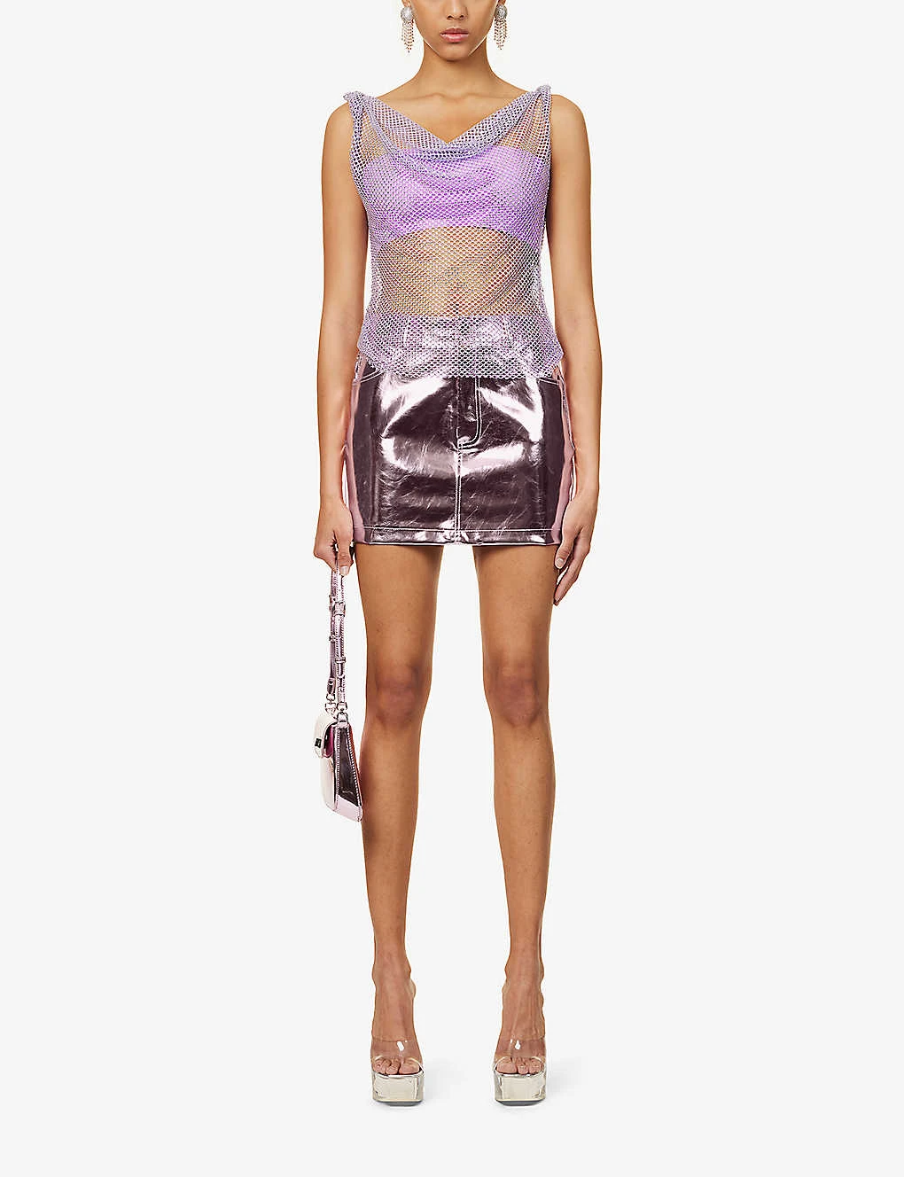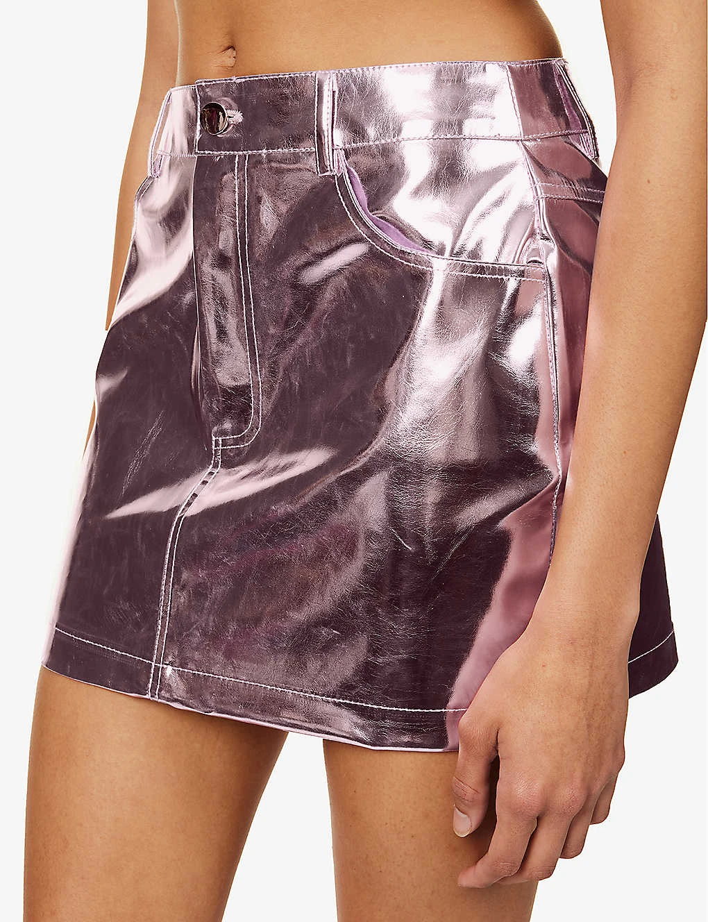 Be the first to review “Metallic Belt-looped Regular-fit Faux-leather Mini Skirt” Cancel reply