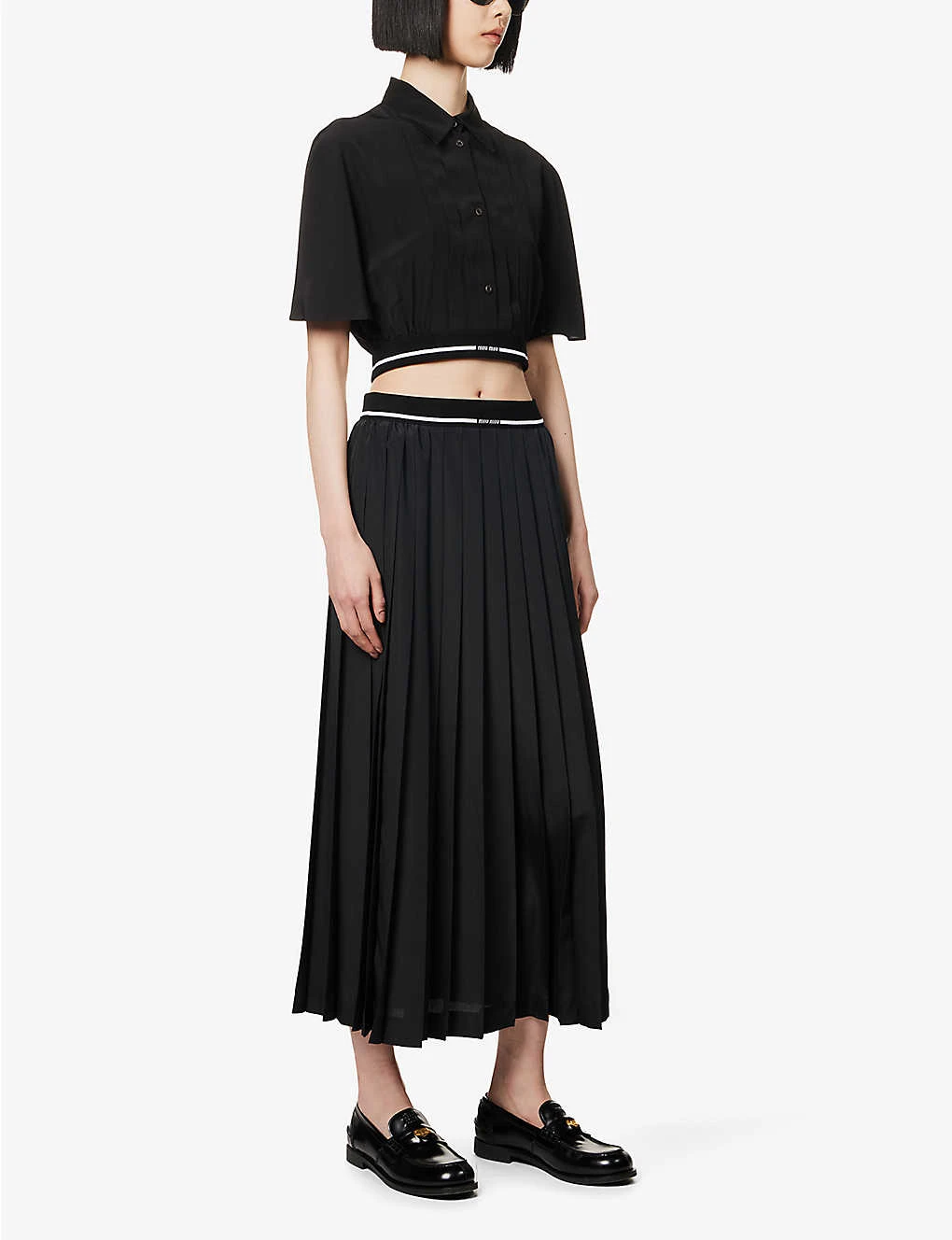 Be the first to review “Miu Miu Pleated High-rise Woven Midi Skirt” Cancel reply