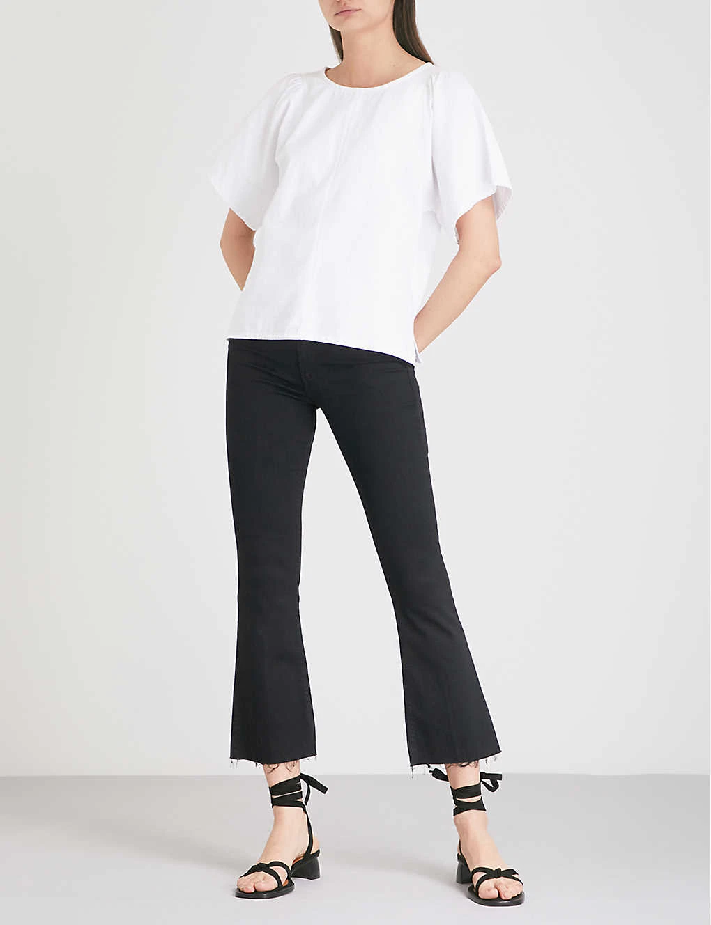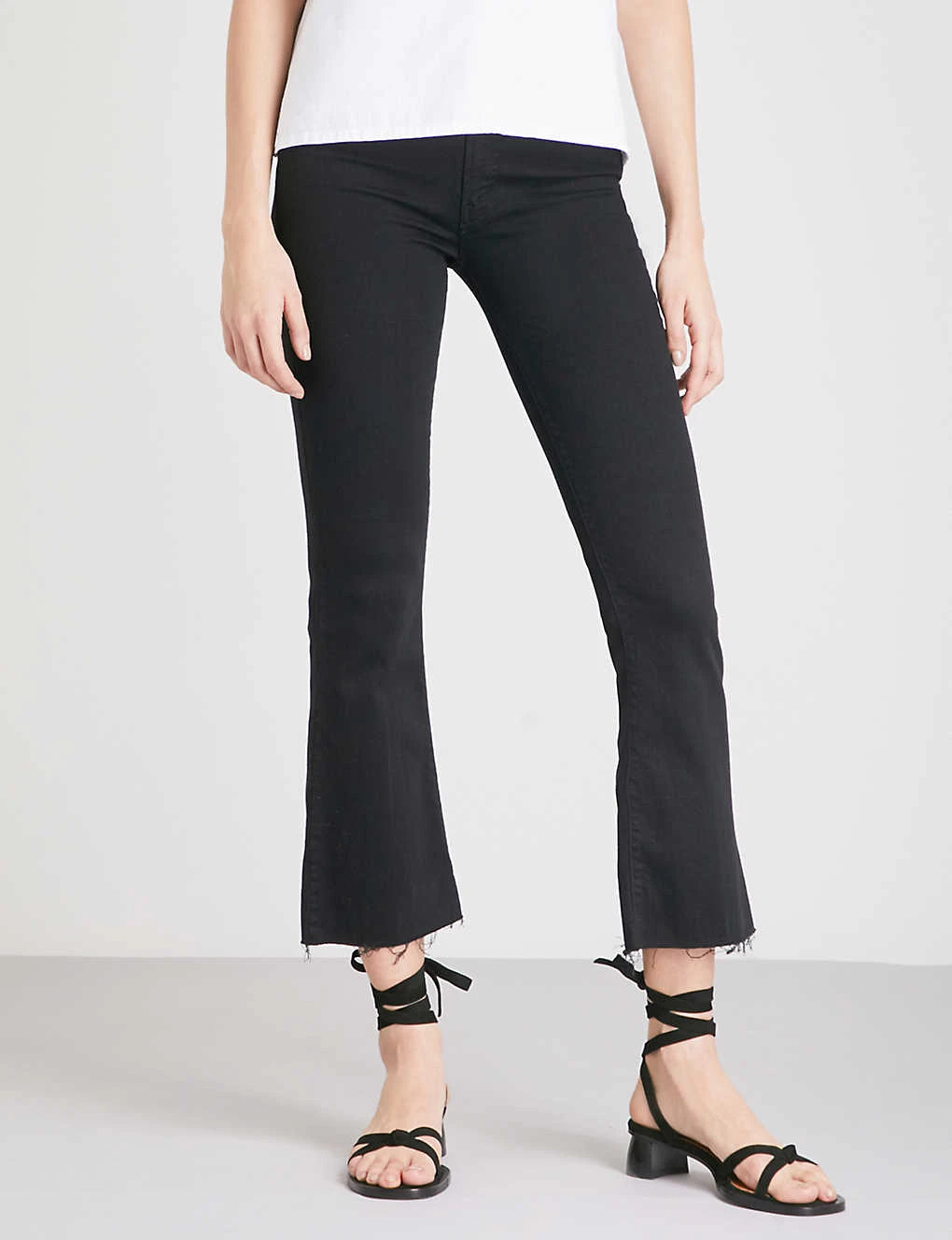 MOTHER Hustler Ankle Fray Flared High-rise Jeans