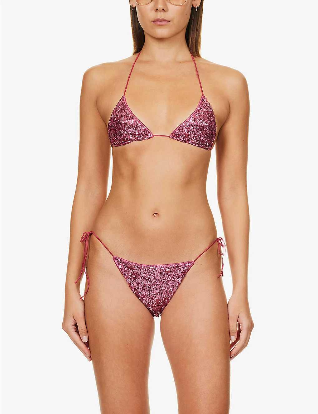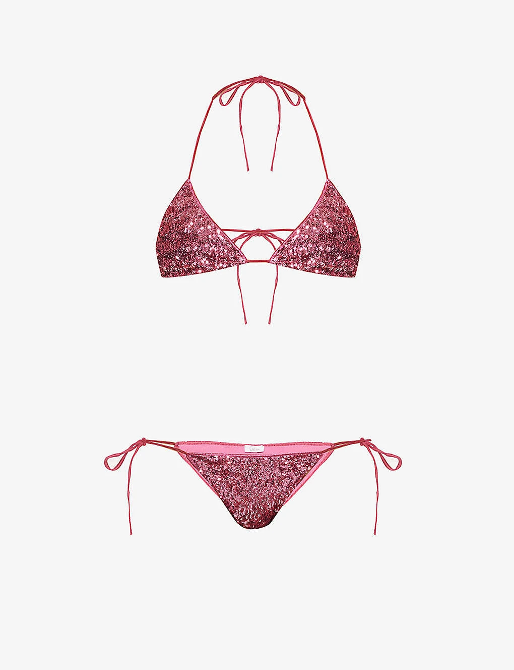 OSEREE Sequin-embellished Mid-rise Bikini Set