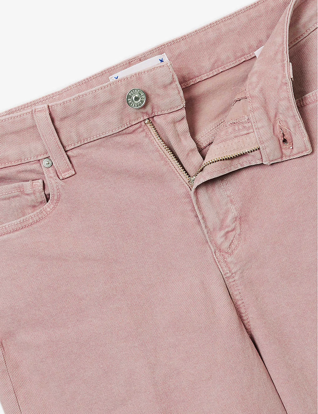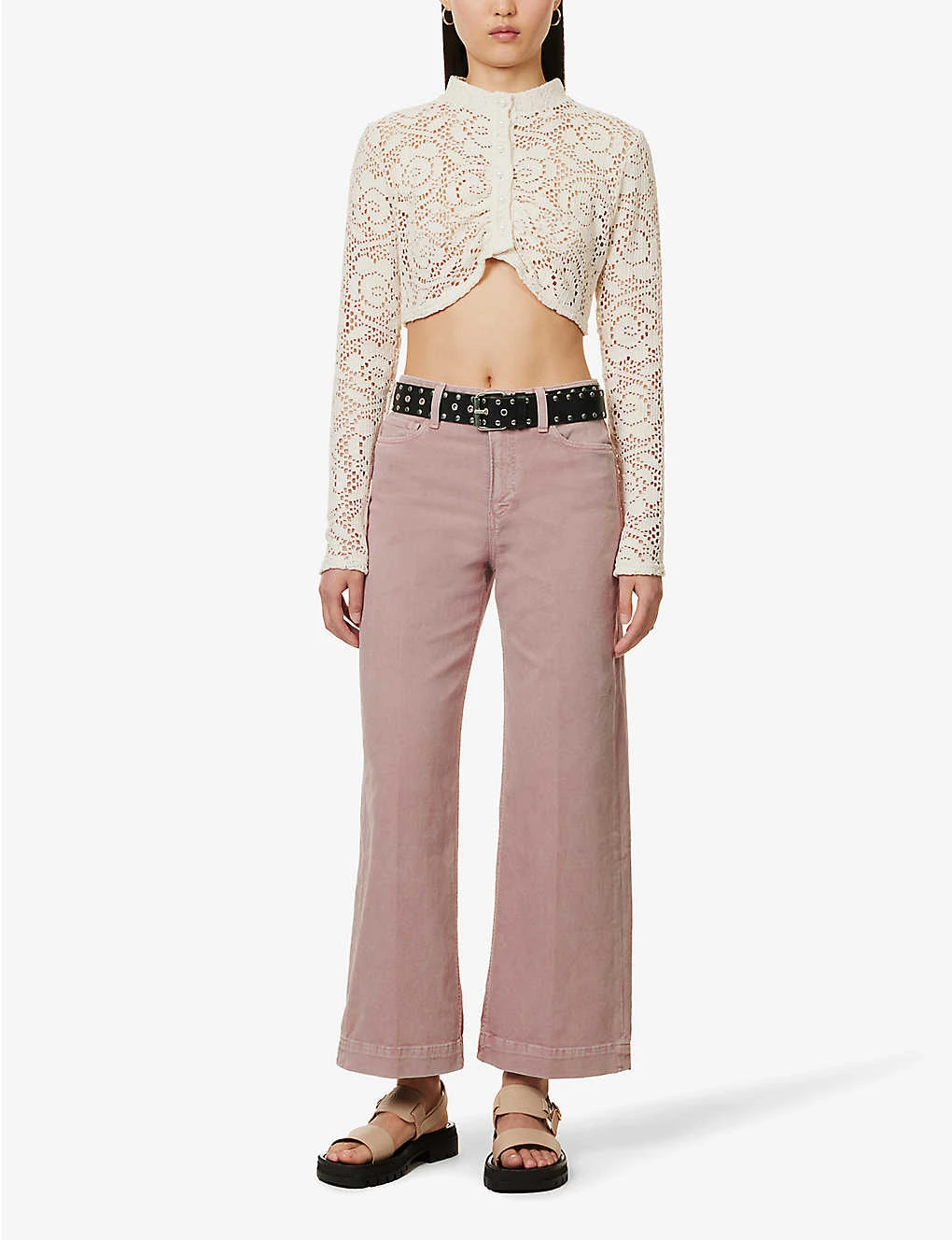 - Regular fit, mid-rise, wide leg, belt loops, branded silver-toned hardware, five pockets, pressed centre creases, cropped, brand patch at back