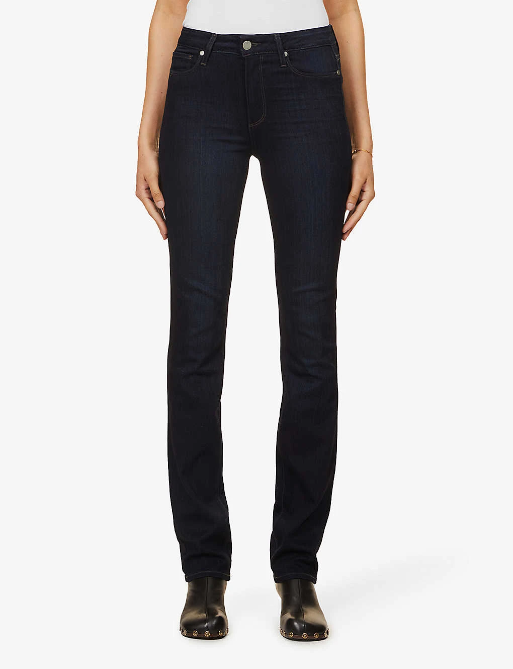 PAIGE stretch-denim jeans Exposed button and concealed zip-fly fastenings at front Straight leg, high-rise, faded wash, belt loops, five pockets, branded hardware, brand label at back waistband, contrast stitching, v-shaped yoke at back 54% rayon, 23% cotton, 22% polyester, 1% elastane Machine wash True to size Size 26: Rise 10.5″”, inside leg 34.5″”, leg opening 14″” Model is 5ft 10″” and wears a size 26 Made in USA