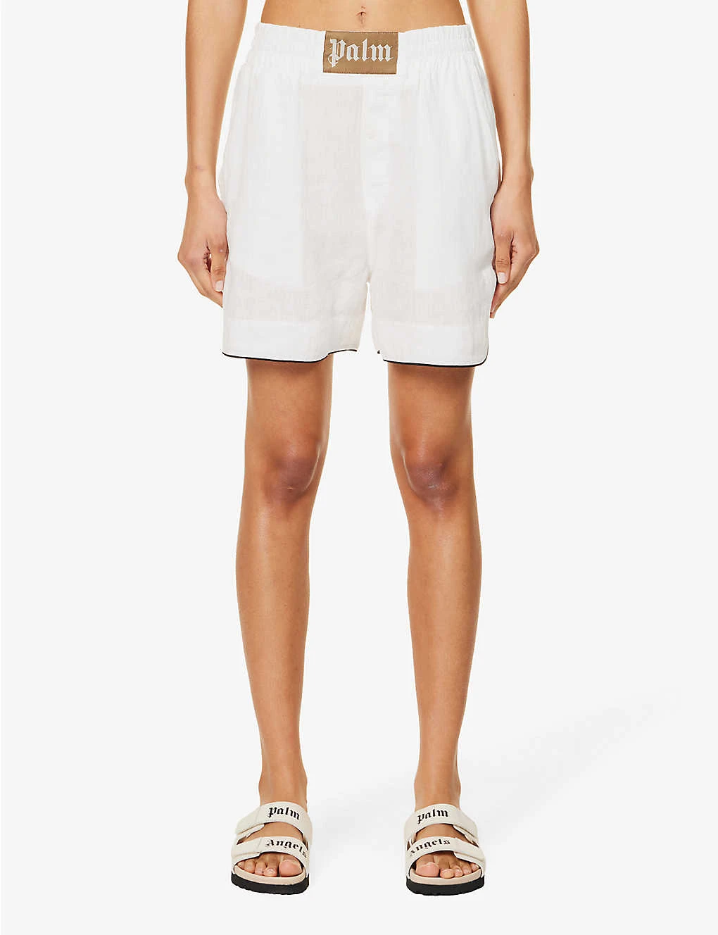 Palm Angels Branded Relaxed-fit Linen Shorts
