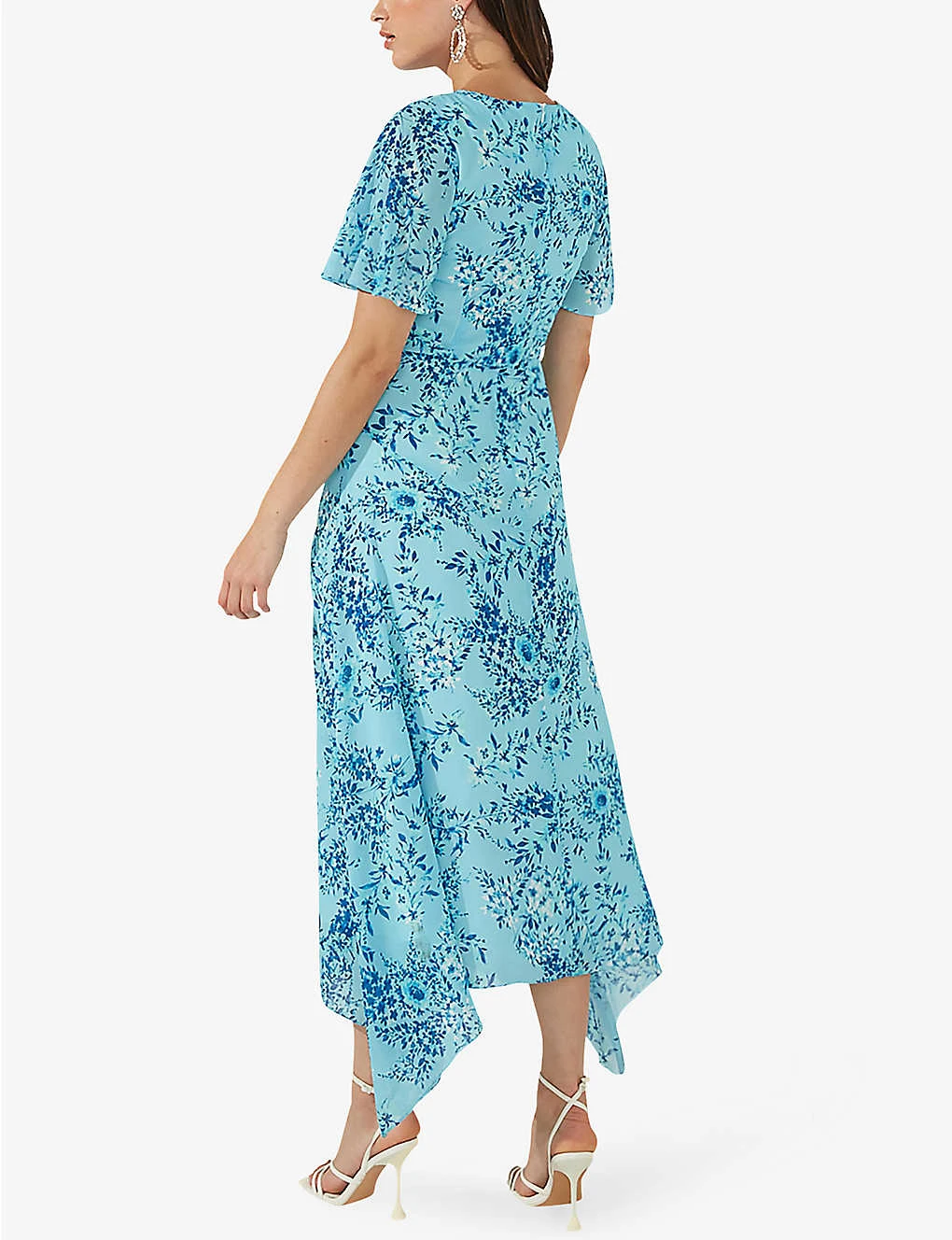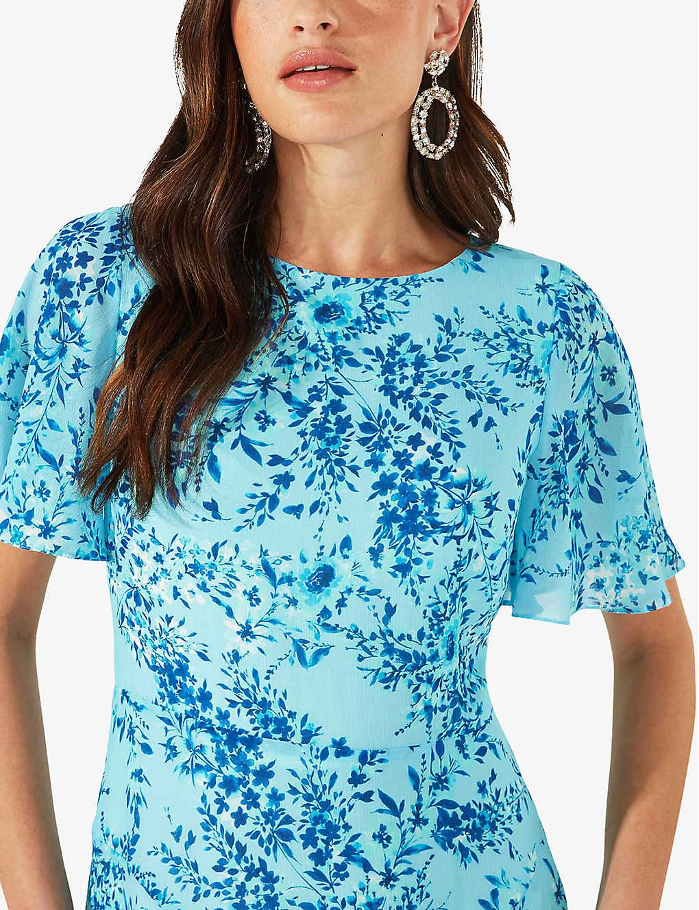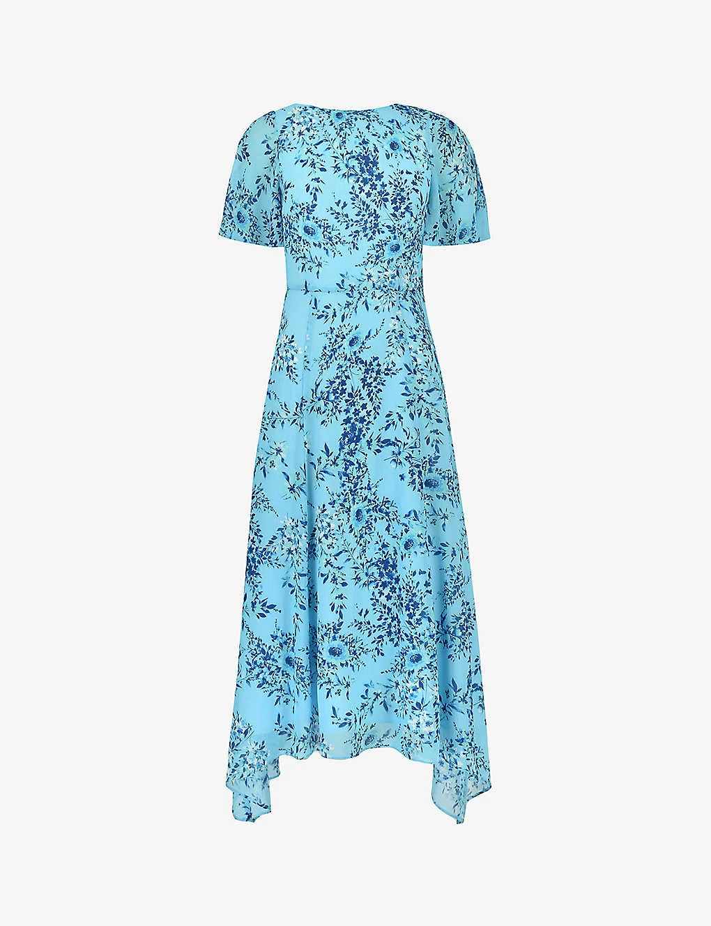 - Regular fit, round neck, flutter sleeves, handkerchief hem, all-over floral print