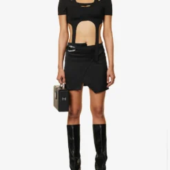 Carabiner-clasp Split-hem Wool-blend Mini Skirt