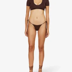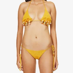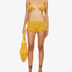 Jaded London Bead-embellished Crochet Cotton-blend Bikini Top