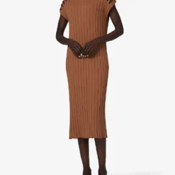 Pleated Crochet-hem Knitted Maxi Dress