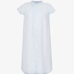 - Regular fit, round neckline, short flutter sleeves, straight gathered yoke at front and back, flared, curved hem