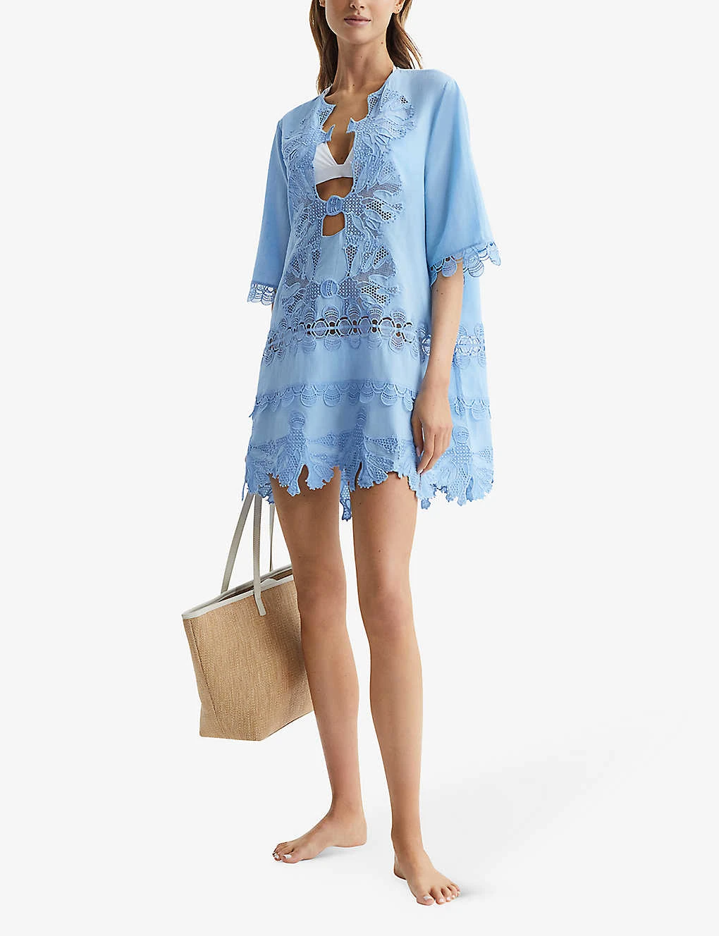 Reiss Etta Embroidered Cotton-blend Kaftan