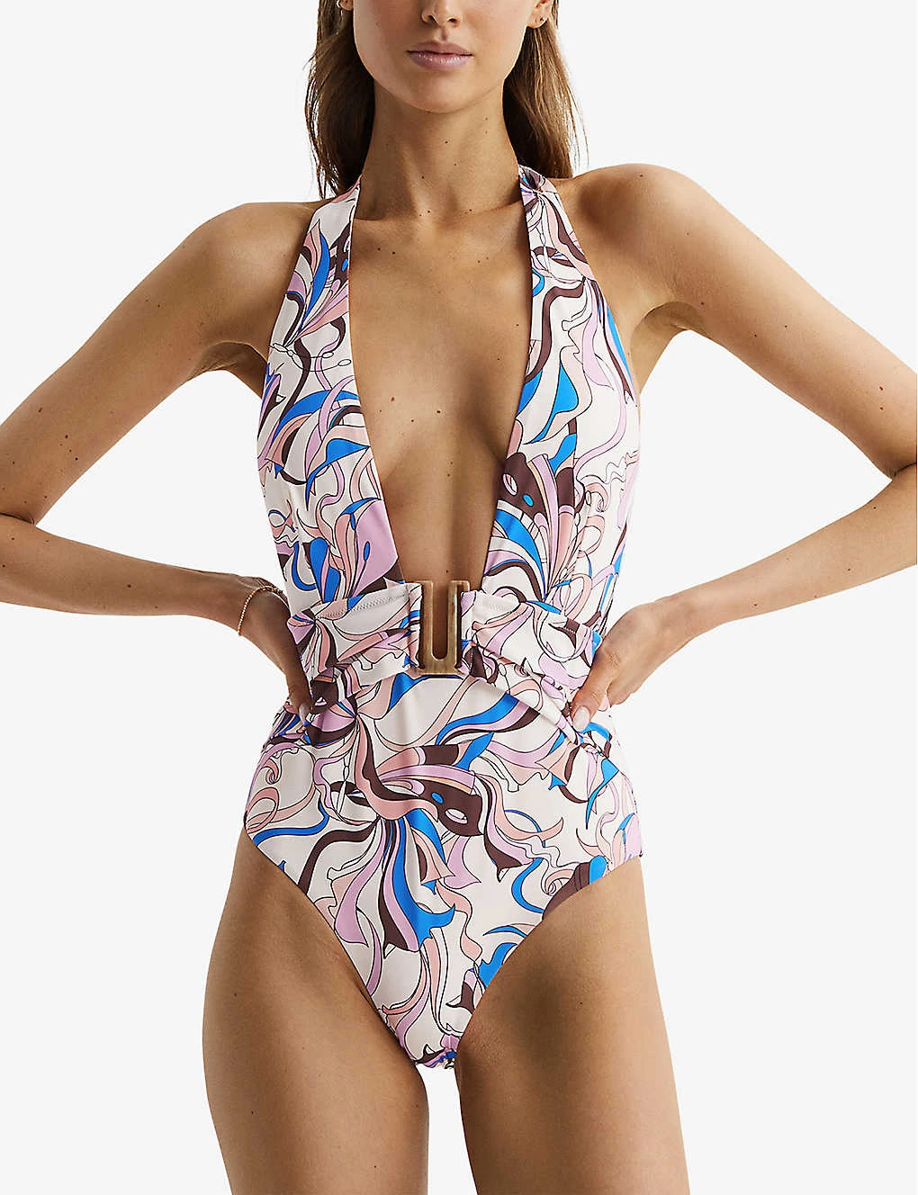 Reiss Isabel Plunge-neck Graphic-print Swimsuit