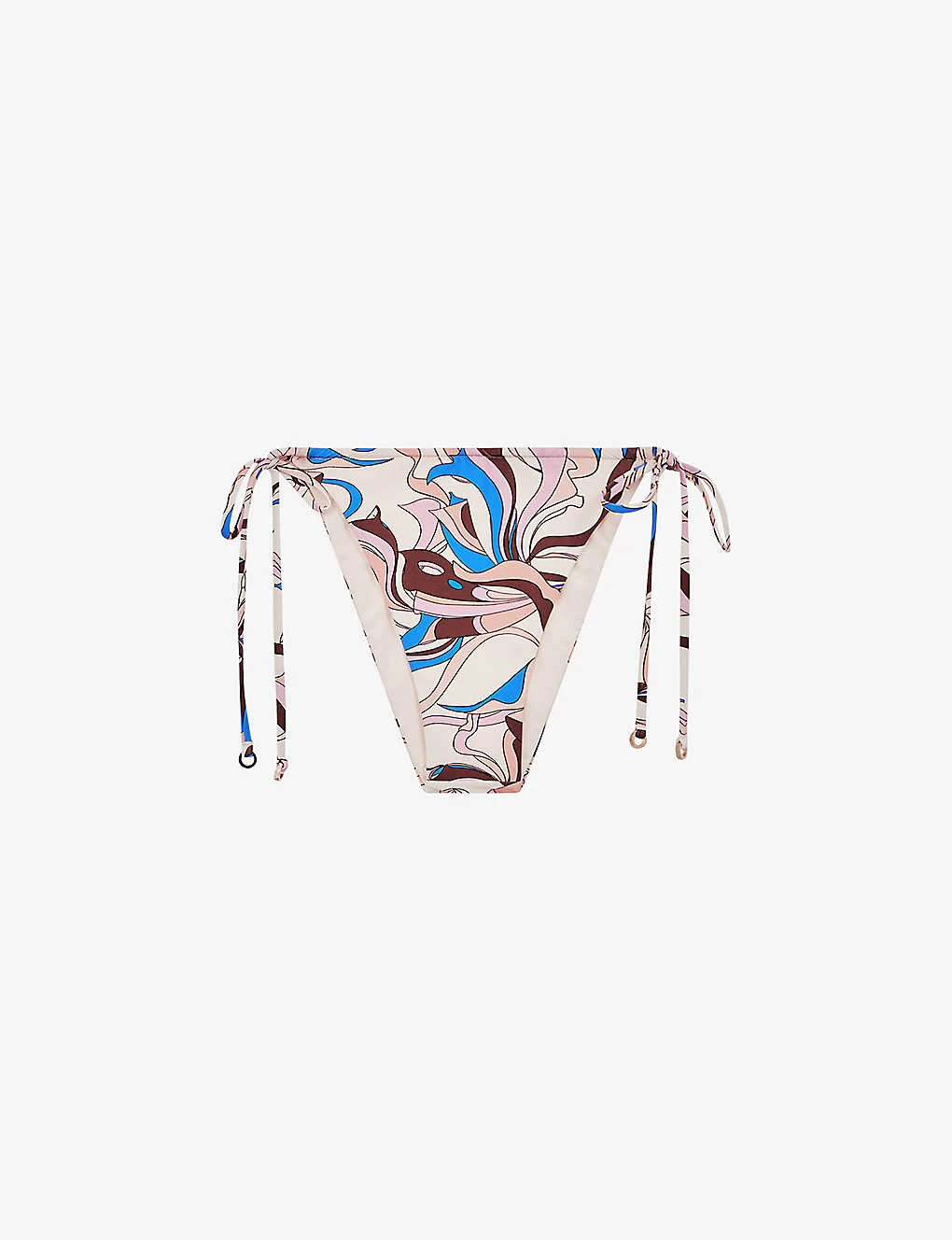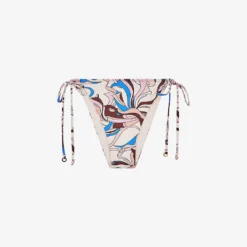 - Self-tie fastenings on either side, triangular design, swirl pattern, gold-toned hardware, low coverage