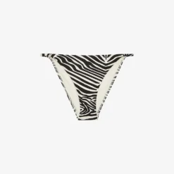 - Low-rise, all-over zebra print, mid-coverage at back