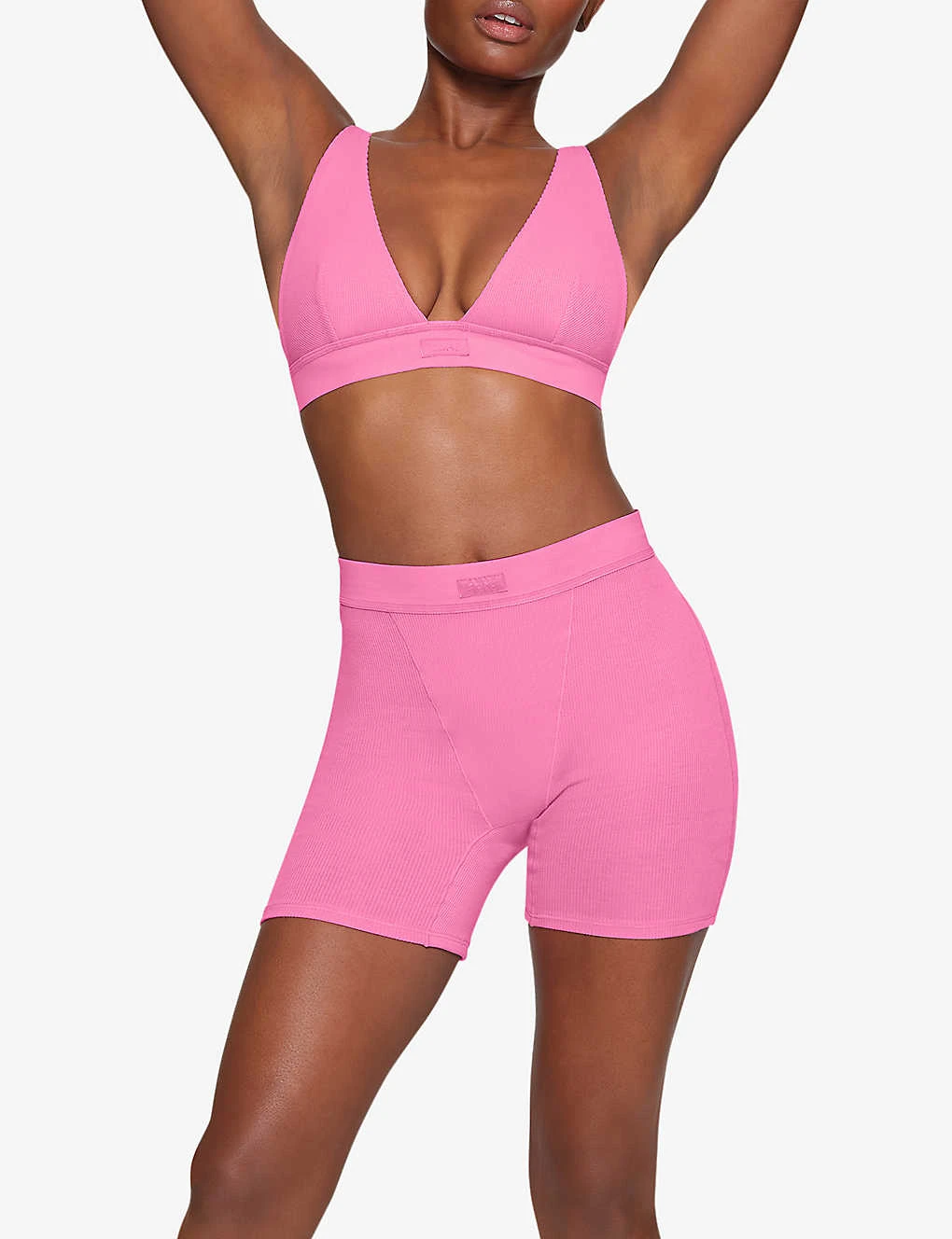 - High rise, fitted, brand-embroidered waistband, all-over ribbing