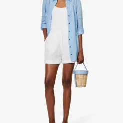 - Mid-rise, elasticated waistband, gold-toned hardware, all-over textured weave, slight-coverage at back, fully lined