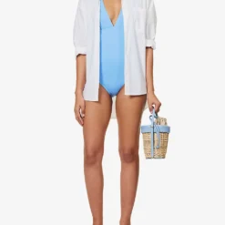 Portofino Plunge Open-back Stretch-recycled Polyamide Swimsuit