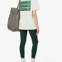 - Slim fit, low rise, ruched design at front, exposed seam stitching, brand text print at back